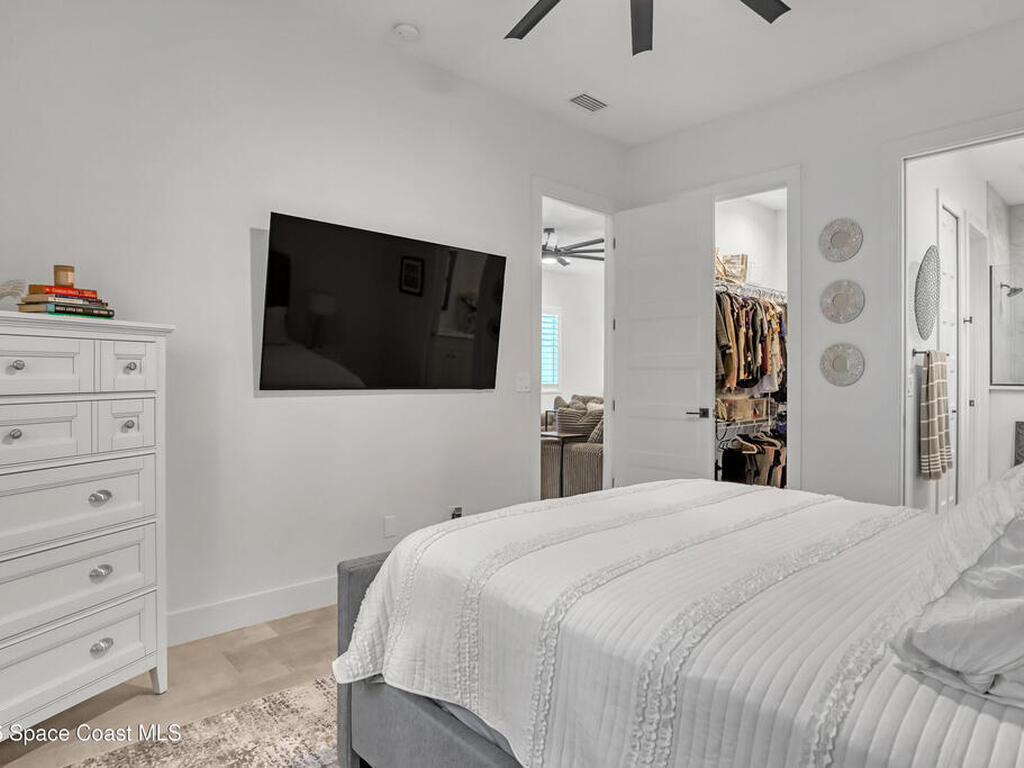 Like brand new custom built pool home located directly on the 8th hole of Crane Creek Golf Course. Model perfect from top to bottom w/no expense spared. All hurricane windows throughout. Top of the line gourmet island kitchen w/42in cabinets, high end appliances, tiled backsplash & quartz countertops. Beautiful porcelain tile & hardwood floors. Screened/covered porch w/heated pool & built in hot tub spa(golf ball screening so the balls won't damage anything). Upgraded 72in fans & plantation shutters. Raised ceilings & 8ft doors throughout. 2 master suites. Whole house gas generator. Extensive use of brick pavers w/widened driveway for 3 cars. Metal roof. Natural gas stove & tankless water heater. The most convenient Melbourne location, close to the beach, airport, shopping & restaurants. Far too many extras & upgrades to list. Don't miss this special property.