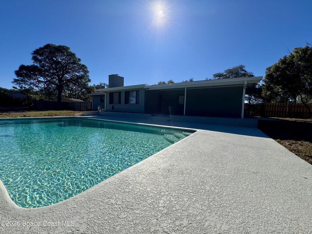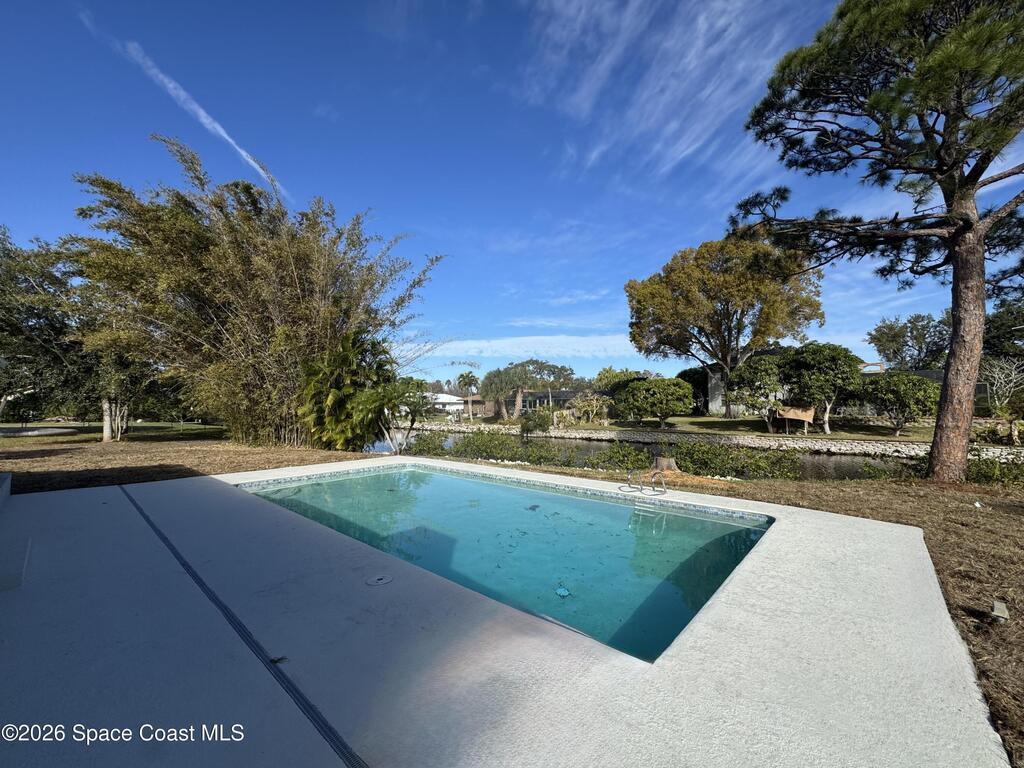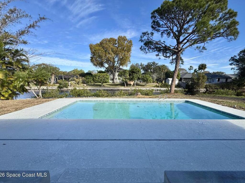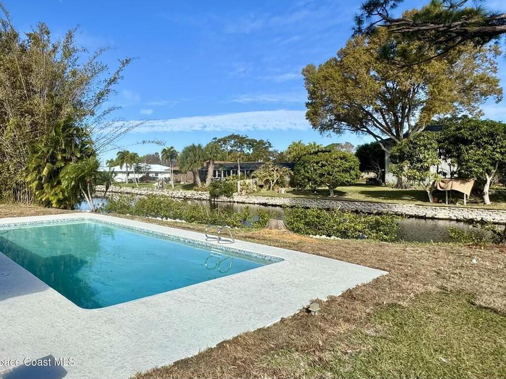 Waterfront POOL home also offers neighborhood access to Indian River with boat ramp and dock. Located in desirable South Merritt Estates Plantation, this beautifully updated property features new appliances, plank tile throughout, granite counters and wood cabinets in bathrooms and kitchen, with a 2-car garage, large open pool and a fenced yard sitting on .64 acres and a canal front. Lawn and pool care provided, NO PETS. NO SMOKING