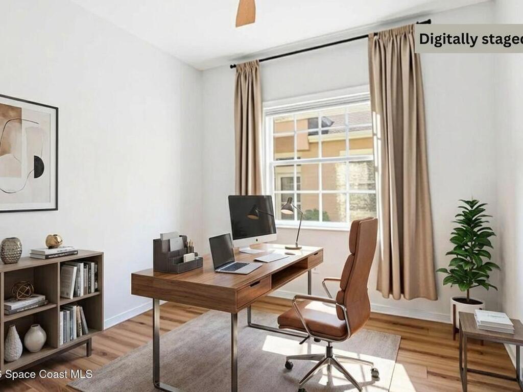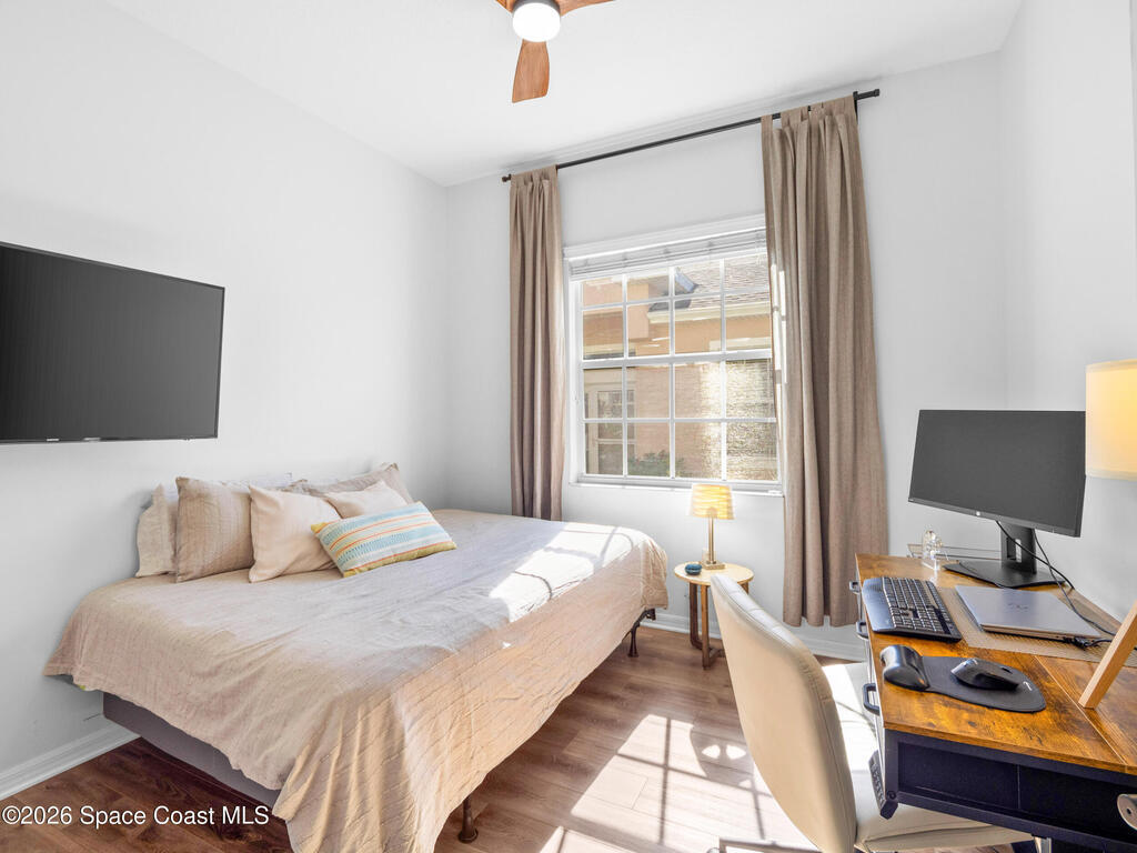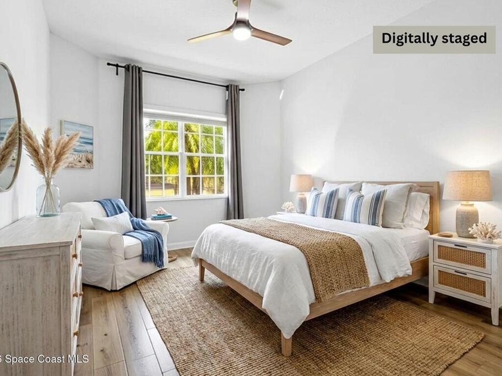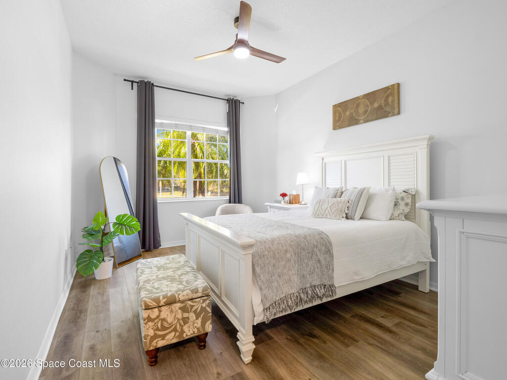 Tucked at the end of a quiet cul-de-sac, this end-unit offers rare privacy. Thoughtfully updated, the home features luxury vinyl flooring w/ tall baseboards throughout, white kitchen w/quartz countertops, SS appliances, all flowing into an open living and dining area designed for comfortable everyday living. The primary suite is a true retreat, complete with a large en-suite bath featuring an oversized garden tub, walk-in shower & private water closet. Enjoy peaceful mornings & evenings on the screened-in porch, perfect for unwinding. Located within the gated Capron Ridge community, residents enjoy a beautiful clubhouse, heated pool, walking trails, parks, tennis shuffleboard courts. Lawn care, exterior maintenance & roof coverage provide low-maintenance living, all within top-rated Viera schools & minutes from shopping, dining, medical facilities, & major employers. A great opportunity to enjoy privacy, convenience & community living in one of Viera's most established neighborhoods.