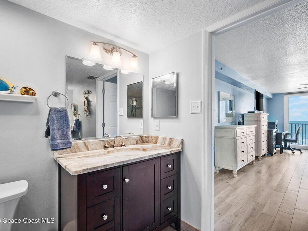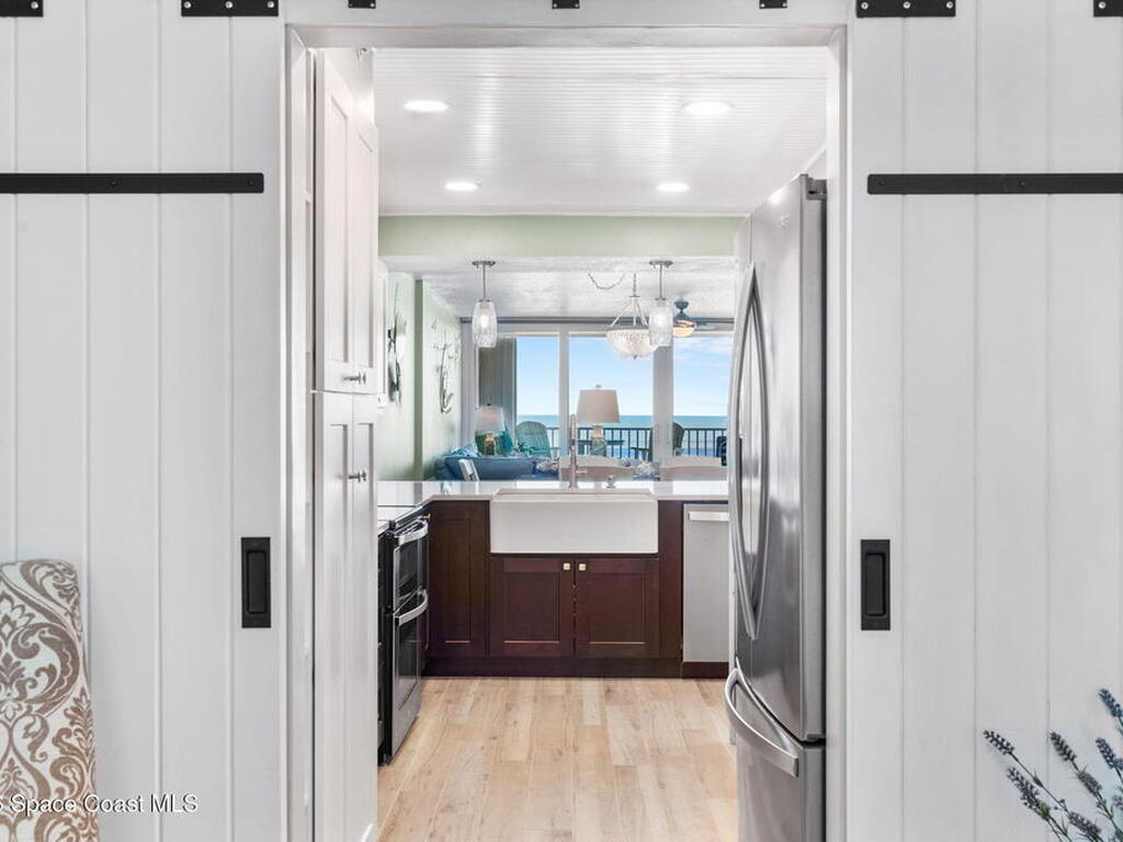 Welcome to Majestic Seas--one of Cocoa Beach's most sought-after oceanfront condominiums- and an unbeatable location. This beautifully updated residence has been fully renovated throughout! Stunning kitchen w/ quartz countertops, new cabinetry, & all-new appliances, blending style and function for everyday living or entertaining. Incredible direct ocean views, breathtaking sunrises & exciting rocket launches right from your large, private balcony! A versatile flex space with modern barn doors offers the perfect solution for a home office or third bedroom when guests arrive. Located on iconic Ocean Beach Boulevard, you're just steps from everything - the Cocoa Beach Pier, restaurants, bars, shopping, and Publix--all within easy walking distance. This is a well-maintained, financially strong building, offering peace of mind and resort-style amenities including: heated pool, beach access, fitness center, clubhouse, Private entry deeded garage and storage. AC one year, furniture negotiable