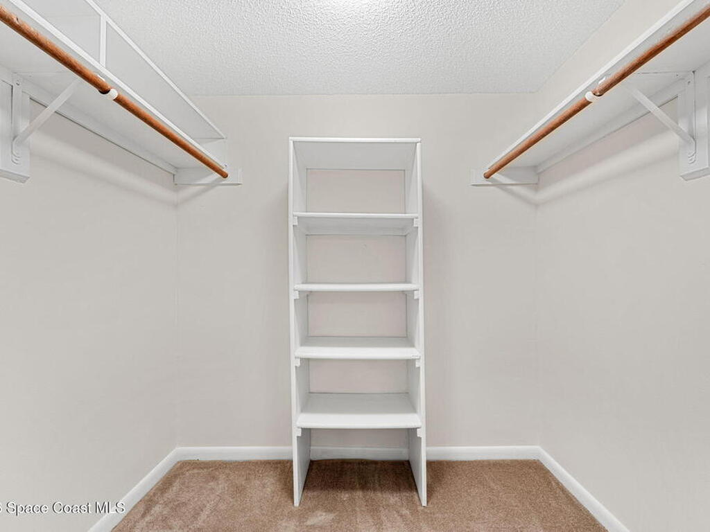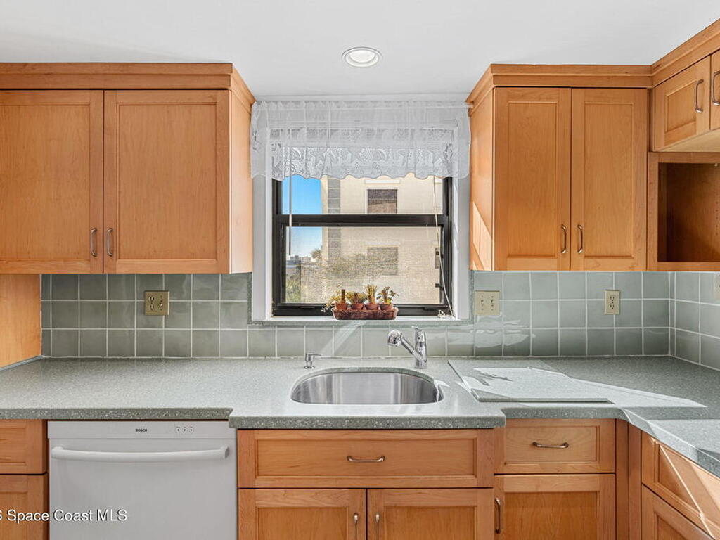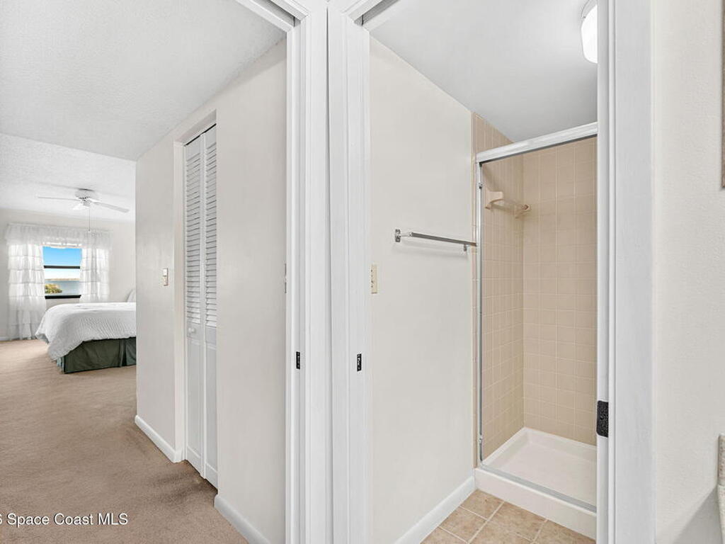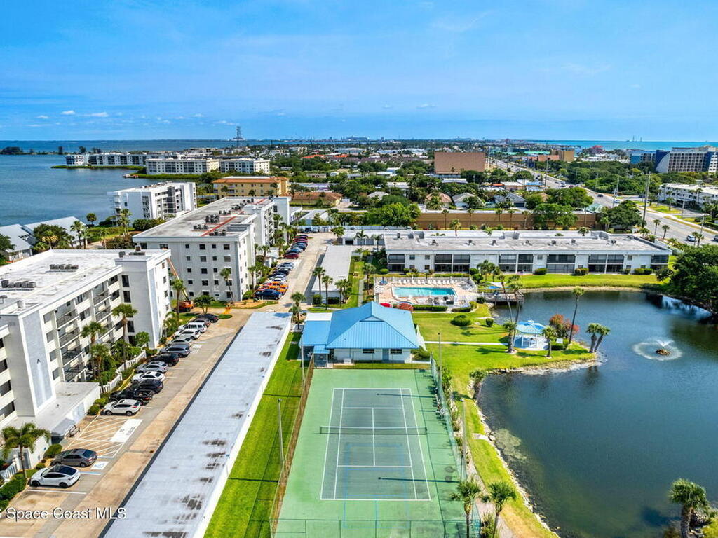 Rarely available 3-bedroom, 2-bath residence in Fountain Cove--an exceptional find in Cocoa Beach. Lovingly maintained as a second home, this fourth-floor unit offers custom wood cabinetry and Corian countertops in both the kitchen and baths, complemented by matching custom built-ins in the living room. Plush carpeting creates comfortable retreats in each bedroom. Enjoy sweeping Banana River views from the private balcony and the primary suite, where dual closets lead into a well-appointed en-suite bath. The balcony has recently completed restoration and is equipped with shutters for added peace of mind. Fountain Cove offers an inviting waterfront lifestyle with a pool, clubhouse, shuffleboard, river access, and car wash station. A deeded private one-car garage plus ample open parking complete this special offering.