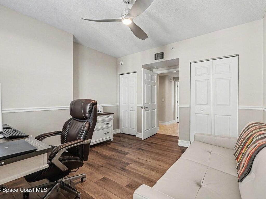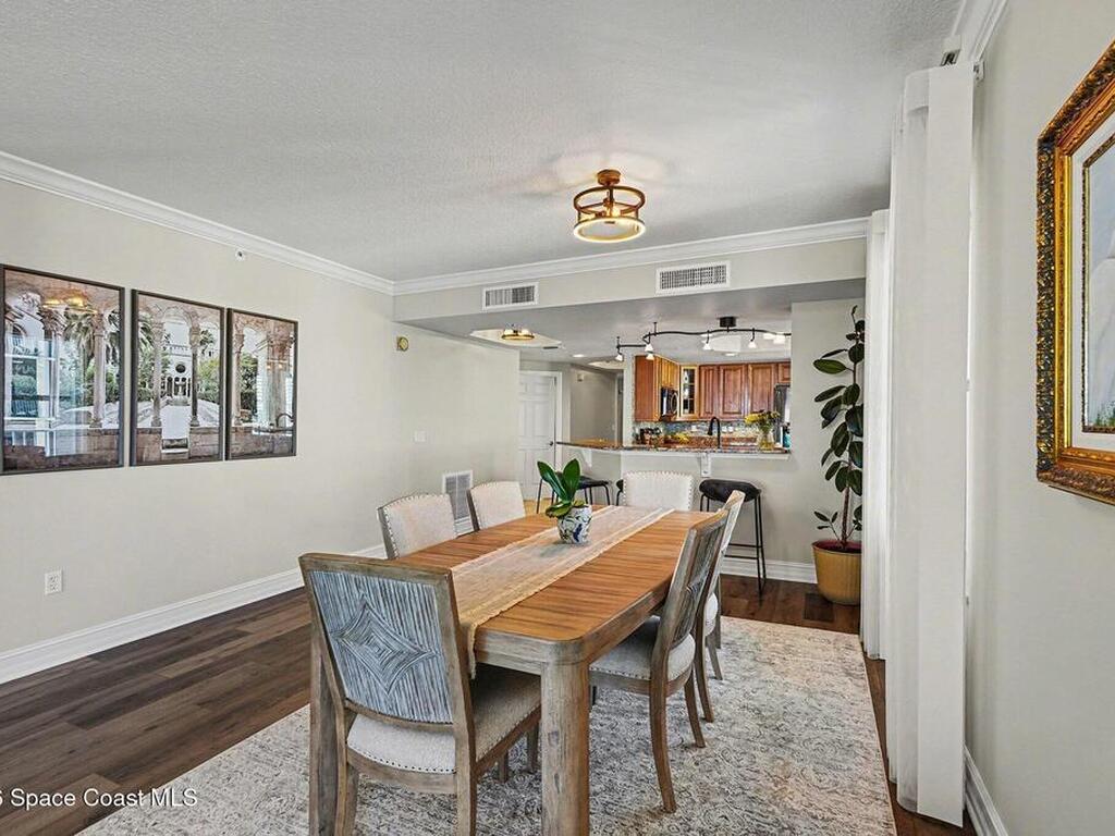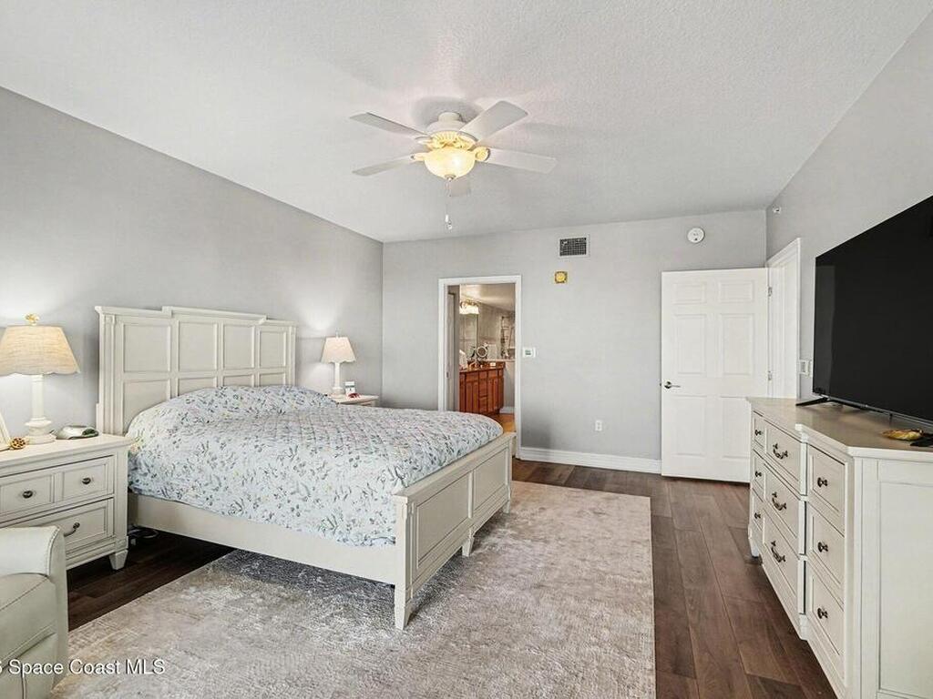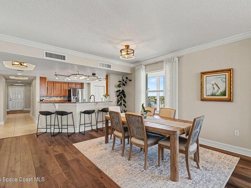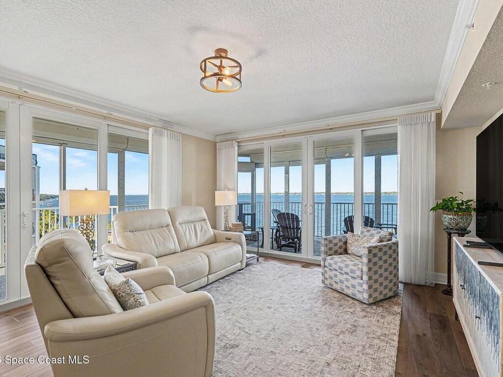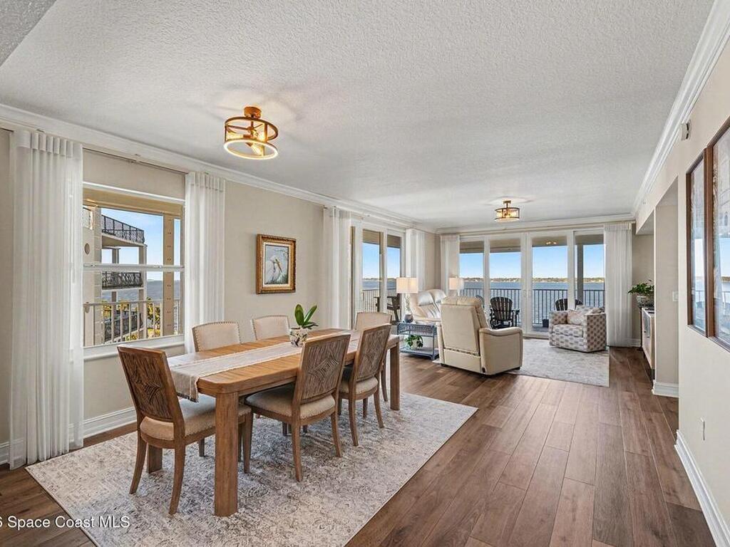This 7th-floor northeast corner residence presents a refined coastal luxury lifestyle, offering four bedrooms and three full baths, including 2 private en-suite retreat. Floor-to-ceiling windows frame panoramic Indian River views, where golden sunrises, playful dolphins, and awe-inspiring rocket launches create a daily spectacle.Designed with model-home sophistication, the residence features fresh designer paint tones and a seamless open-concept layout that enhances light and flow. The upgraded chef's kitchen is both elegant and functional, showcasing custom extended countertops, a movable statement island, and generous custom cabinetry--perfect for entertaining or everyday luxury living.Step outside to a private marina just moments away, with boat slip ownership or rental options available, offering effortless access to waterfront adventures. Electric roll-down storm shutters provide both peace of mind and modern convenience.The impeccably maintained building is FULLY funded