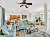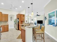 Impeccably crafted custom home offering 2, 151 sq ft of refined living on a pristine .28-acre lot. This 3BR/2BA/2CG residence with a den (or 4th BR) showcases soaring ceilings, crown molding & a sophisticated split plan. The gourmet kitchen gleams with granite, SS appliances & an inviting eat-in bar. Enjoy the tranquil lanai views of a very private, landscaped backyard. The sumptuous primary suite offers dual walk-ins & a spa-inspired bath. Tile & LVP throughout. Low HOA includes lawn care. Room for pool--minutes to beaches, fine dining & boutiques.Adjoining lakefront lot available for purchase.