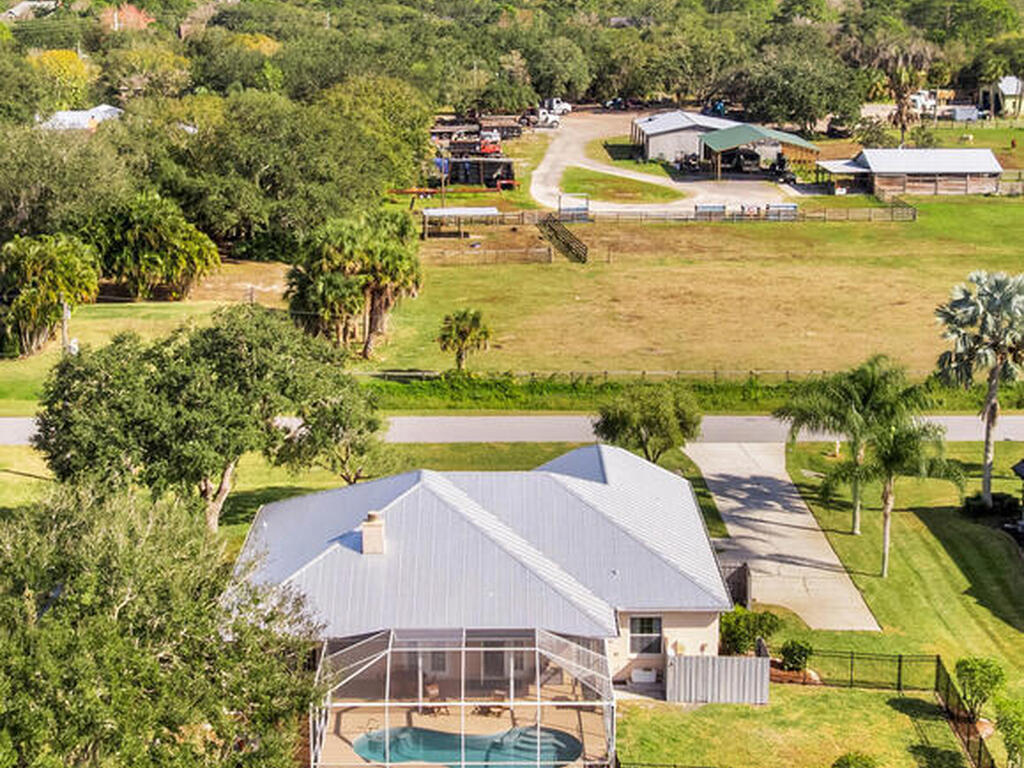 Sit back & relax in your screened-in saltwater pool while enjoying stunning sunsets over a private preserve & peaceful lake. This home offers exceptional privacy w/ a farm in front, protected preserve behind, & on a quiet dead-end street--truly a rare find. The open-concept layout features a modern kitchen w/ granite countertops, stainless appliances, and generous cabinet/pantry space. Open the living room doors on warm days to enjoy pool views & refreshing breezes, or cozy up by the real wood-burning fireplace on cooler evenings. The spacious primary suite includes dual walk-in closets, double vanities, walk-in shower, & soaking tub. Two well-sized guest bedrooms offer great closet space, & the common bath also serves as a pool bath. Upstairs, updated private loft/4th bedroom features new flooring & a remodeled bathroom. Additional highlights include matching tile throughout, window shutters, fenced yard for kids or pets, newer AC & water heater, & a recently installed metal roof.