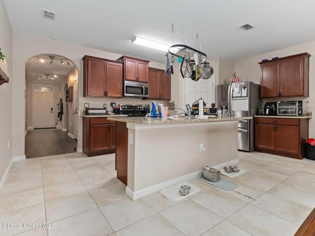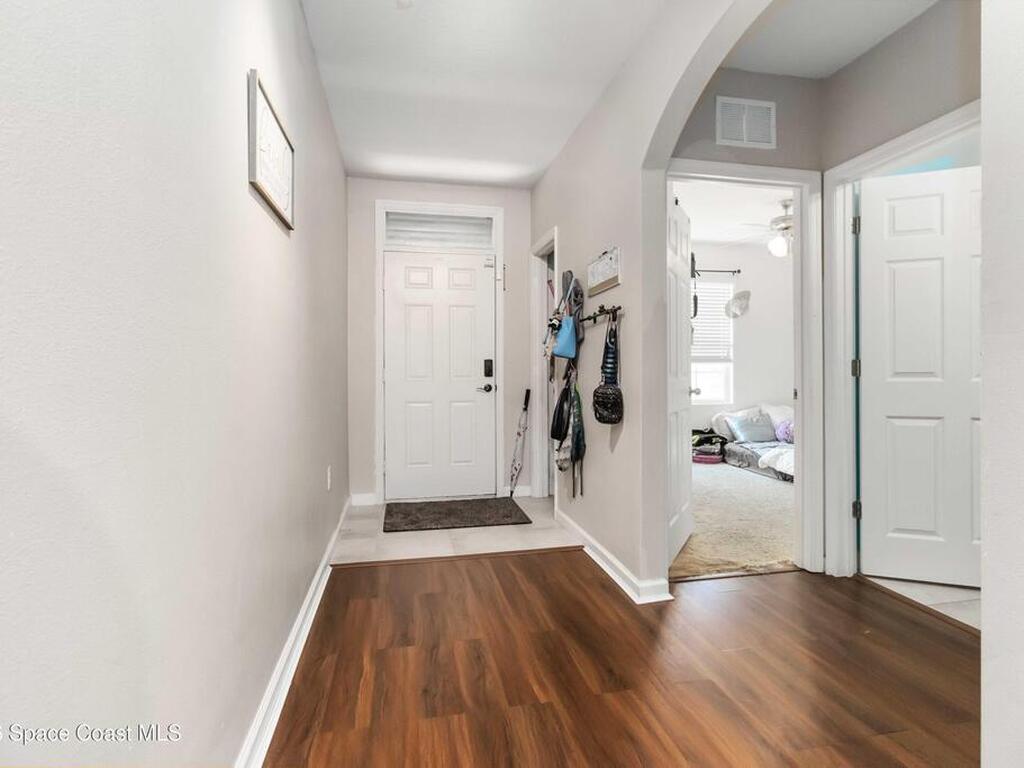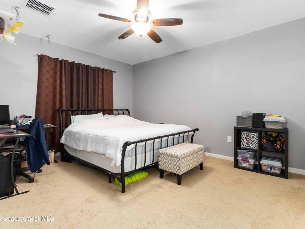 This beautiful 4 bedroom, 2 bathroom home was built in 2017 and boasts plenty of space and storage. Open concept floor plan with walk-in pantry and designated laundry room. Large walk-in closet in the primary with an additional closet and separated toilet room. Large 2 car garage and a fully fenced in back yard. This house has it all! 20 minutes to the beach, 45 minutes to Orlando and you can watch rocket launches from your back yard. ASSUMABLE VA LOAN! You would need to qualify to assume the loan. More details provided upon request.