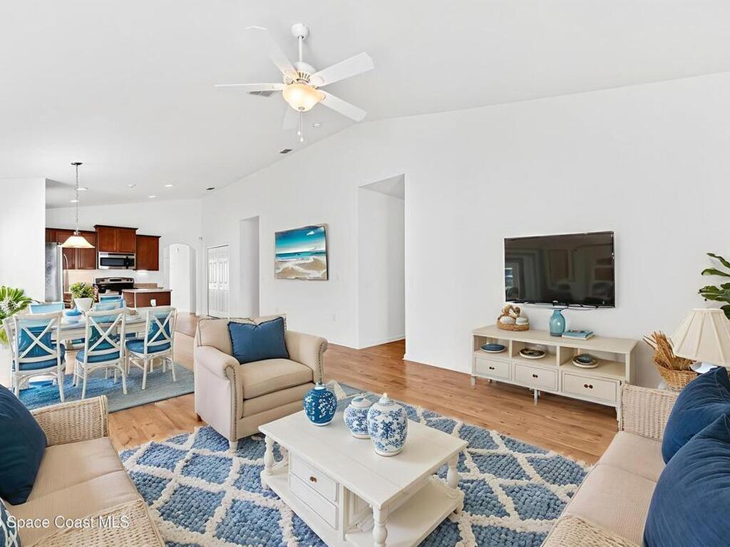 Nestled in the award-winning Sisson Meadows subdivision of Titusville, this 2010 D.R. Horton build offers an exceptional blend of sophisticated upgrades and natural serenity, making it a prime target for the region's booming aerospace professional community. The neighborhood itself is a masterpiece of design, featuring meandering streets lined with mature shade trees and an HOA that meticulously maintains the lush landscaping and two expansive lakes stocked with bass for premier catch-and-release fishing. Inside the three-bedroom, two-bath residence, the kitchen serves as a high-end centerpiece, boasting rich Cherry cabinets, elegant recessed lighting, and 36-inch staggered uppers finished with decorative crown molding. The modern workspace is fully equipped with ''clean steel'' smooth-top stove, dishwasher, and microwave--a fingerprint-resistant finish that pairs perfectly with the home's open, functional layout. Strategically located near the Space Coast's major aerospace hubs.