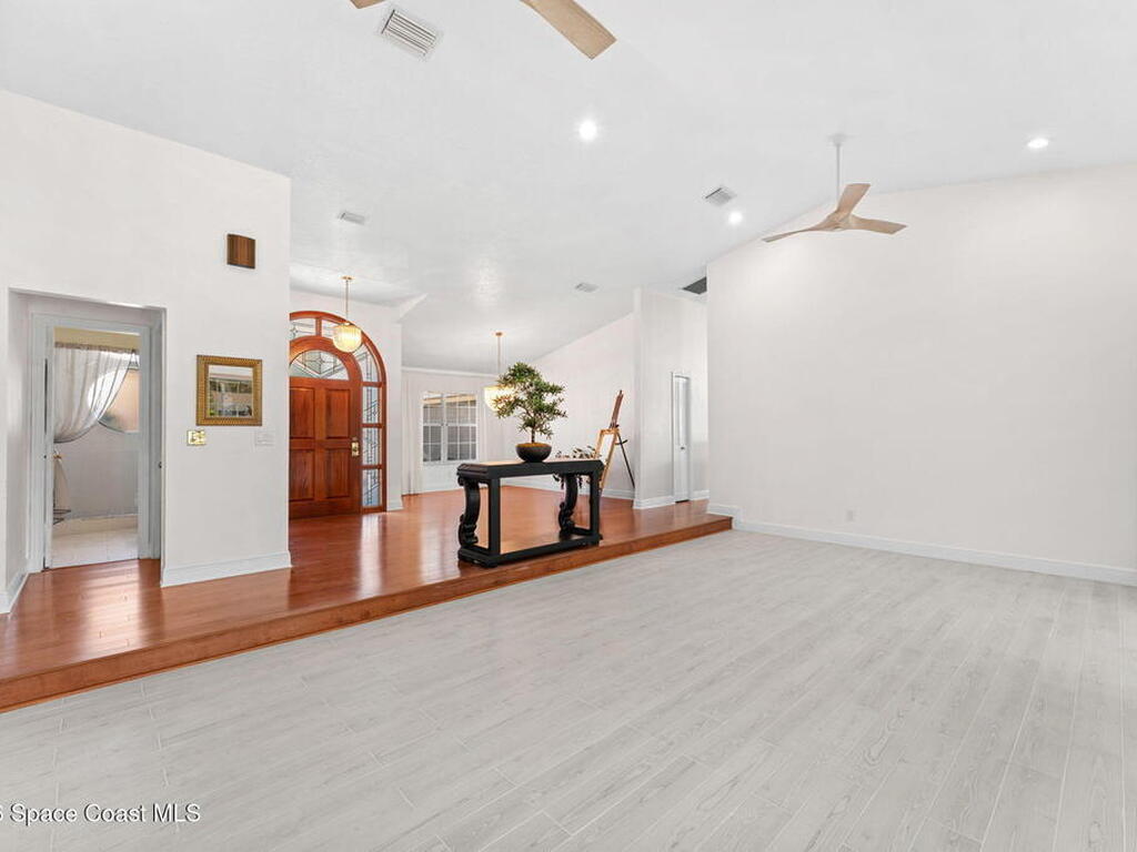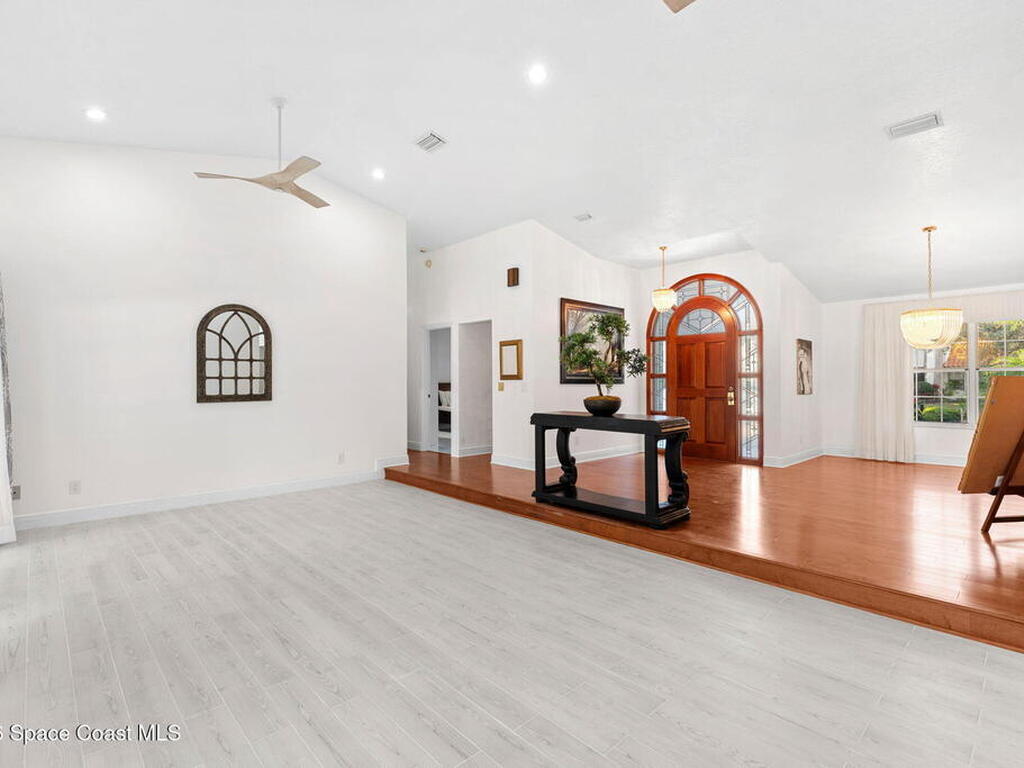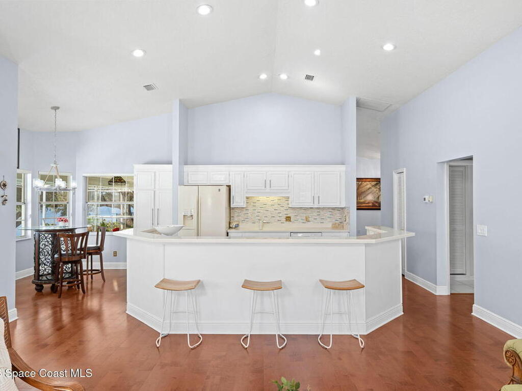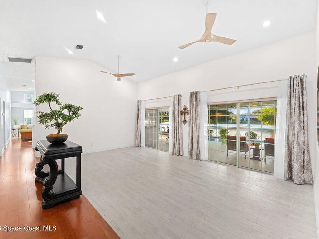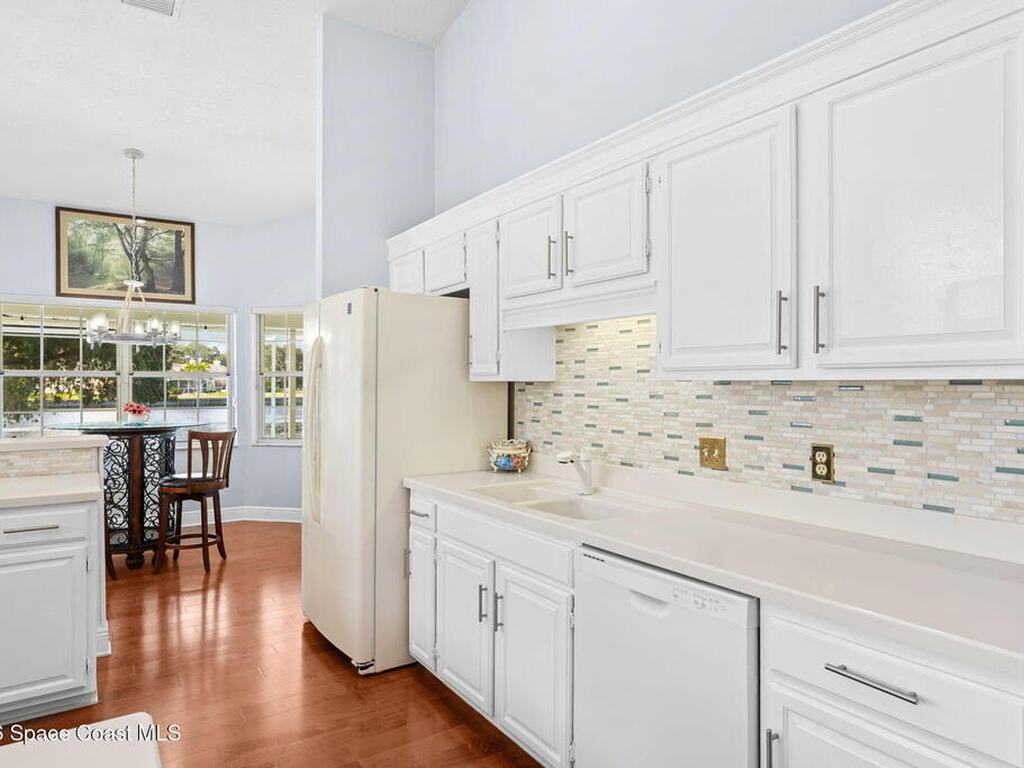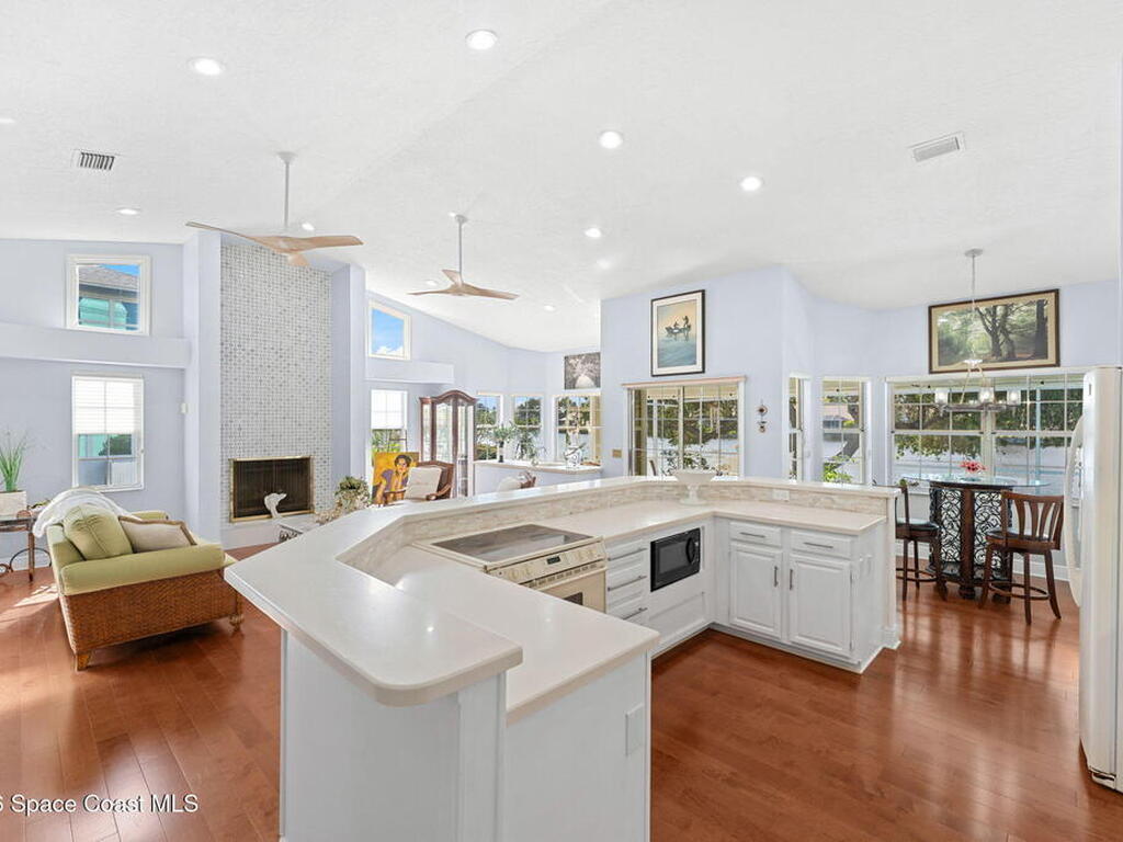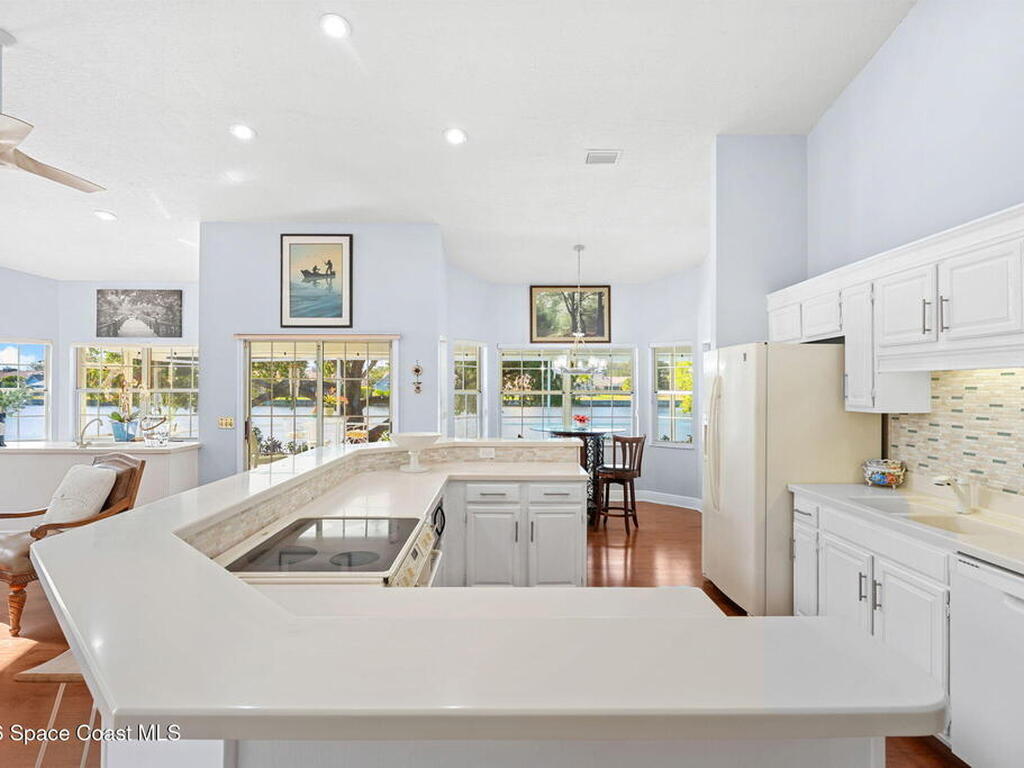 WATERFRONT- PRIVATE POOL and SPALocated in the highly sought-after Fairways at Suntree, this updated 4-bedroom, 3-bath, 2-car garage home, near golfing, offers peaceful lake views. The home features a spacious, open layout with a large living room, chimney, bar area, breakfast nook, a formal dining area, plus a separate family/living room ideal for entertaining. Recent updates include new flooring, renovated bathrooms, and newer appliances (not all shown in photos). The primary bedroom and all main living areas enjoy serene water views. Step outside to a private pool overlooking the lake, perfect for relaxing or hosting.This property is in a prime location near Suntree Country Club, numerous golf courses, the Brevard Zoo, The Avenue Viera for shopping and dining, easy access to beaches, the Kennedy Space Center, Melbourne and Orlando International Airports, Vero Beach, Disney World, and other world class attractions.