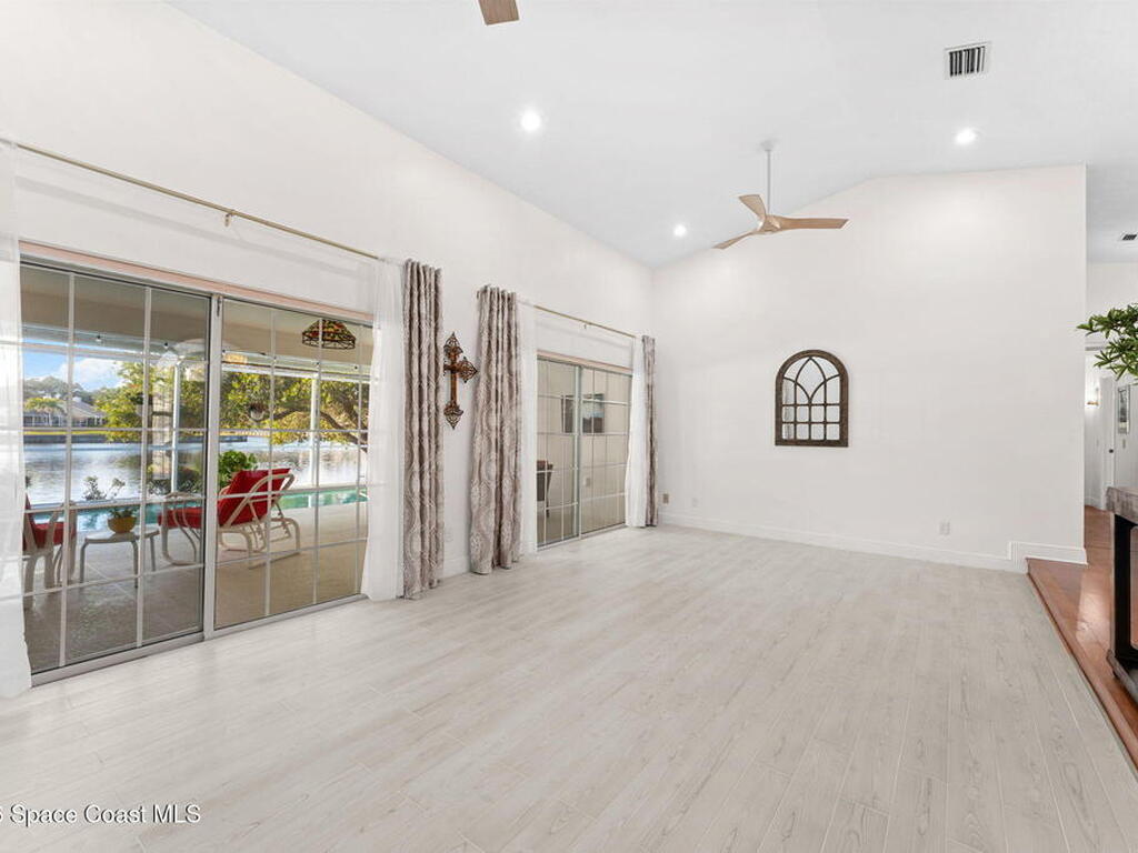 WATERFRONT- PRIVATE POOL and SPA Located in the highly sought-after Fairways at Suntree, this updated 4-bedroom, 3-bath, 2-car garage home, near golfing, offers peaceful lake views.The home features a spacious, open layout with a large living room, chimney, bar area, breakfast nook, a formal dining area, plus a separate family/living room ideal for entertaining. Recent updates include new flooring, renovated bathrooms, and newer appliances (not all shown in photos). The primary bedroom and all main living areas enjoy serene water views. Step outside to a private pool overlooking the lake, perfect for relaxing or hosting.This property is in a prime location near Suntree Country Club, numerous golf courses, the Brevard Zoo, The Avenue Viera for shopping and dining, easy access to beaches, the Kennedy Space Center, Melbourne and Orlando International Airports, Vero Beach, Disney World, and other world class attractions.
