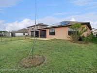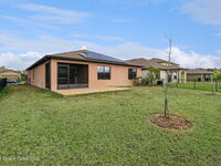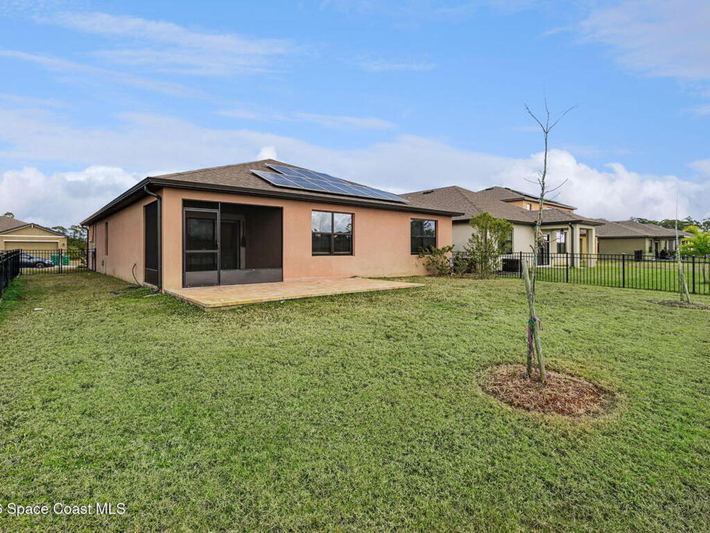 PAID OFF SOLAR panels make this move-in ready 4-bedroom, 2-bath home in Cocoa, Florida an exceptional value in the highly desirable Adamson Creek community. Built in 2022, this single-story, energy-efficient residence offers 1, 830 square feet of open-concept living with a split-bedroom floor plan for privacy and functionality. The modern kitchen features a large island, pantry, and eat-in dining area, flowing seamlessly into spacious living and dining spaces with tile and carpet flooring throughout. The primary suite includes a walk-in closet and a walk-in shower. Enjoy peaceful pond views from the screened rear porch and a fully fenced backyard ideal for outdoor living and entertaining. Additional highlights include a 2-car garage, central air conditioning, in-unit laundry, and low quarterly HOA. Conveniently located near top-rated schools, shopping, dining, and major highways, this newer construction home offers the perfect blend of comfort, efficiency, and location in Brevard Cty,