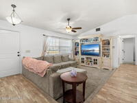 Fresh paint gives this 3-bedroom, 2-bath home a crisp reset, complemented by newer wood-look tile floors that bring a polished, cohesive look throughout. The updated kitchen is thoughtfully designed, featuring a true walk-in pantry that adds practical storage without sacrificing style. The primary bedroom stands out with a walk-through his-and-hers closet, a feature typically reserved for more custom layouts. Impact windows draw in steady natural light, and the expansive screened porch leads to a generous fenced backyard ready for gardens, gatherings, or future upgrades. With a roof just a few years old and no HOA limiting your options, the home offers a refreshing blend of flexibility and modern updates that make daily living feel straightforward and well-supported.
