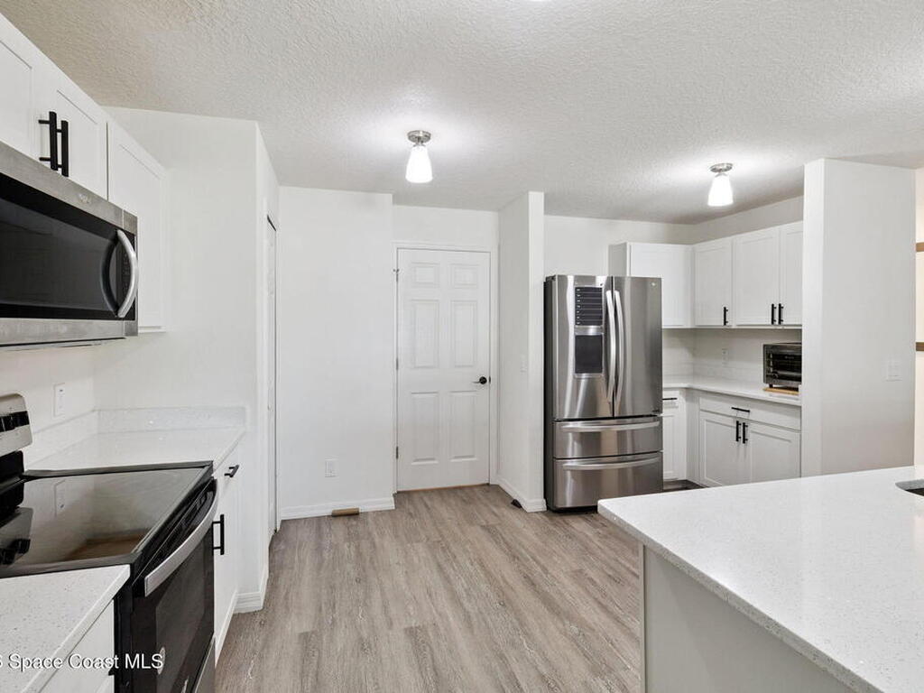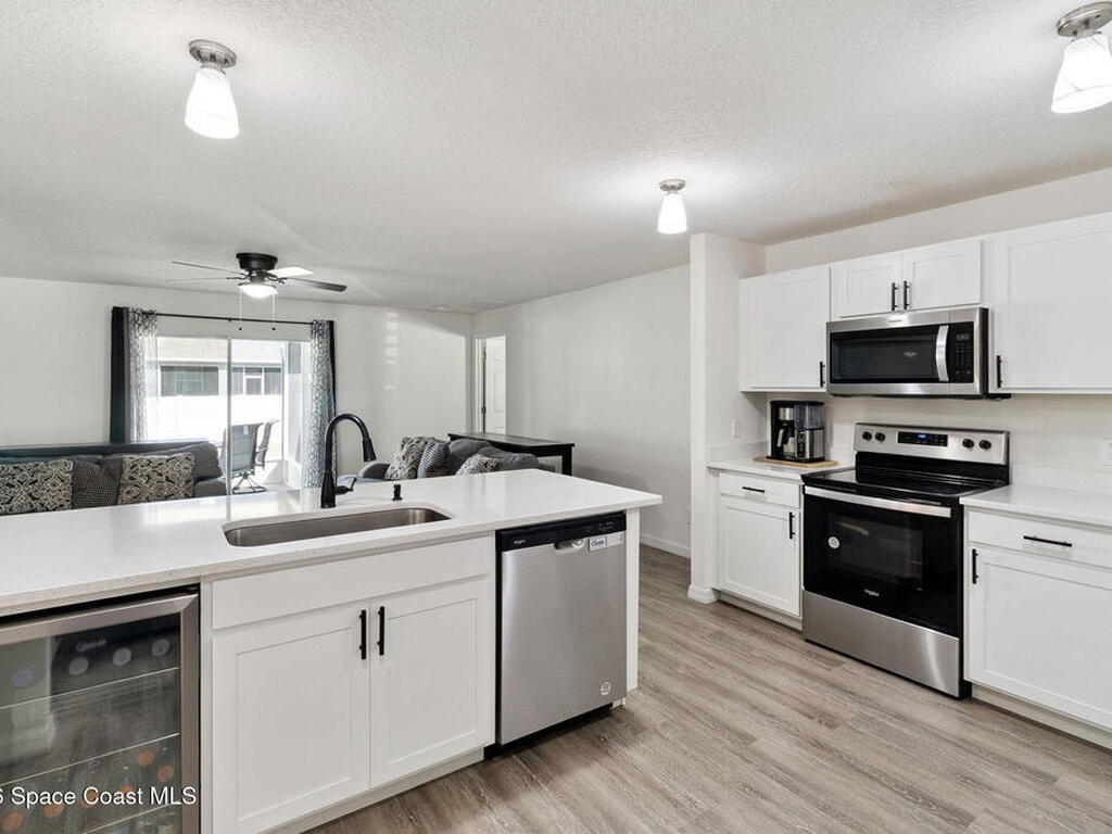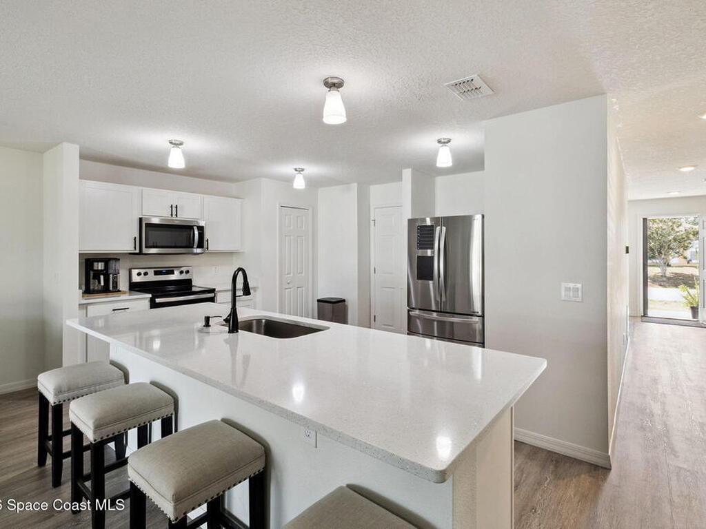 Don't wait to build, move right into this stunning, fully updated 4 bedroom, 2 bath home with a spacious 3 car garage! Designed with modern living in mind, the open concept kitchen and family room are perfect for entertaining or cozy family nights. The kitchen boasts quartz countertops, crisp white cabinets, stainless steel appliances, a smooth top range, and microwave, making it both stylish and functional. The master suite offers a private retreat, thoughtfully separated from the other bedrooms for peace and tranquility. Step outside to your fully fenced backyard with a 6-foot white vinyl privacy fence and dual gates. Relax under the covered, screened lanai or make the most of Florida living with the generator ready plug and 50-amp garage circuit. Additional upgrades include gutters, Ring cameras, a wireless Honeywell thermostat, LiftMaster garage door opener, Kwikset keyless entry, Kidde smoke and carbon monoxide detectors, and freshly painted interiors.