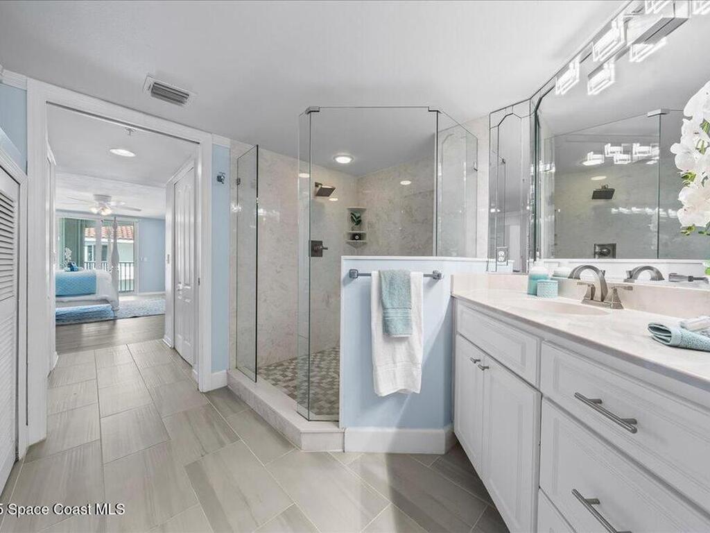 Live in style at Puerto del Rio in Cape Canaveral. This 3-bed, 2-bath penthouse offers elevator access to your front door, stunning river views, and front-row seats to rocket launches. Enjoy a bright, open layout with floor-to-ceiling sliders, automated shutters, tile flooring, and a chef's kitchen with Quartz counters, custom cabinets, and stainless appliances. Relax in upgraded bathrooms or entertain in style. Community amenities include 2 pools, hot tubs, fitness center, and party room. Includes garage parking and private storage. Just minutes to beaches, Port Canaveral, and 45 mins to Orlando Airport. Schedule your tour today!