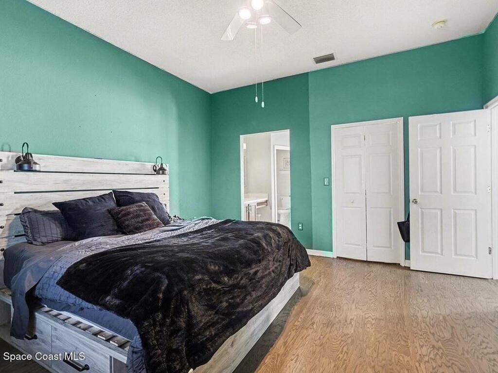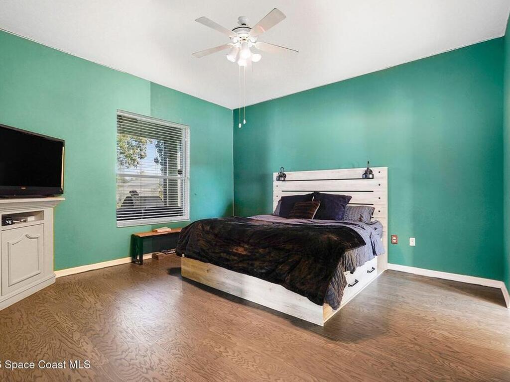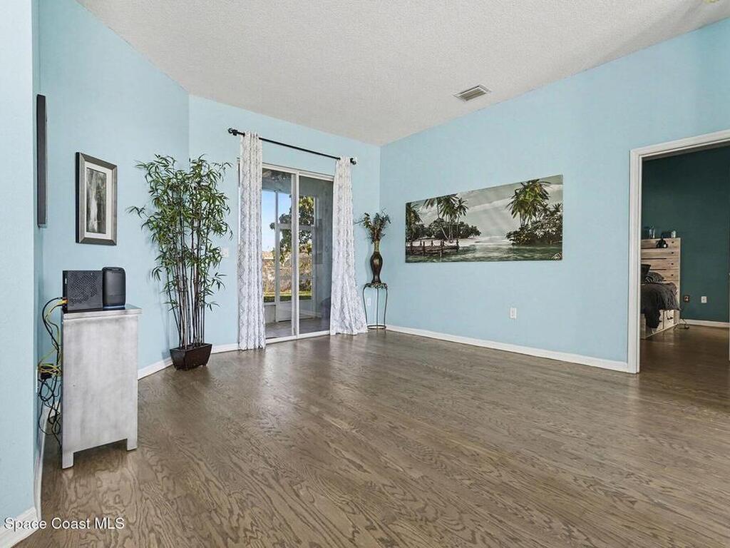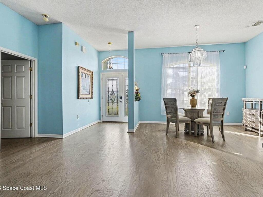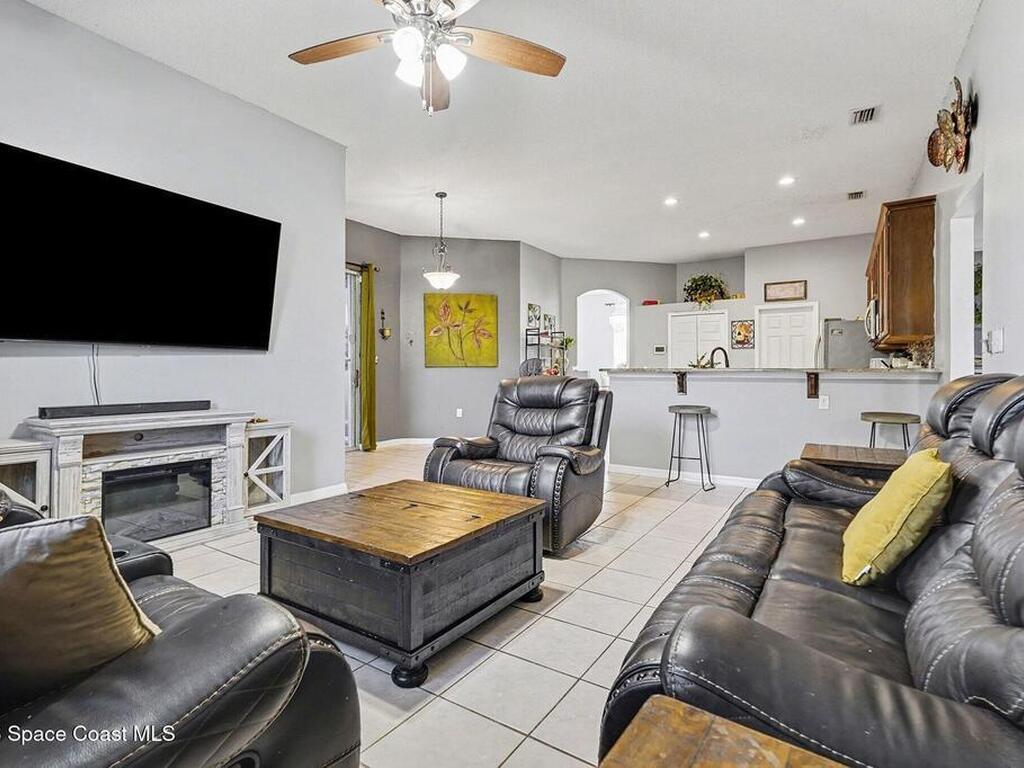 This CHARMING COASTAL RETREAT in the heart of Palm Bay is defined by its massive, fluid living area where the kitchen opens directly into a deep family room. This EXPANSIVE GREAT ROOM creates a natural sense of connection, making the home feel much larger than its footprint. The layout is anchored by beautiful ENGINEERED WOOD FLOORING and a split-bedroom design that prioritizes privacy for the primary suite. Large windows throughout draw in a wealth of NATURAL LIGHT, emphasizing the high ceilings and clean lines of the interior. Practical needs are met with a 2-car garage and the security of HURRICANE SHUTTERS. This WELL-MAINTAINED HAVEN offers an effortless transition from cooking to lounging, perfectly suited for those who value OPEN-CONCEPT LIVING. Located just minutes from the Space Coast's best beaches and schools, this home is ready for you to move in and start your next chapter.