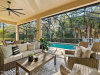 Step into this Designer upgraded 4-bedroom, 3-bath home, located in the golf cart friendly community of Plantation Bay! A stunning open-concept home filled with natural light, a stunning and cozy neutral design scheme, freshly painted in Benjamin Moore, gorgeous bamboo floors, elegant draperies, a fabulous lighting concept and a cozy elegant feel throughout the entire home. The updated chef's kitchen boasts 42'' cabinets, granite countertops, and GE appliances, walk-in pantry, dry bar, and boutique style dining nook. The spacious master suite offers a walk-in closet and a hotel style ensuite. Enjoy the resort style outdoor living area, with a gorgeous pool/spa combo! The angled lot provides ample privacy, stunning landscaping, irrigation, home alarm system, two car garage and side entry golf cart garage door & so much more! This home also offers quick access to the brand-new Founders Club! Schedule your showing today!