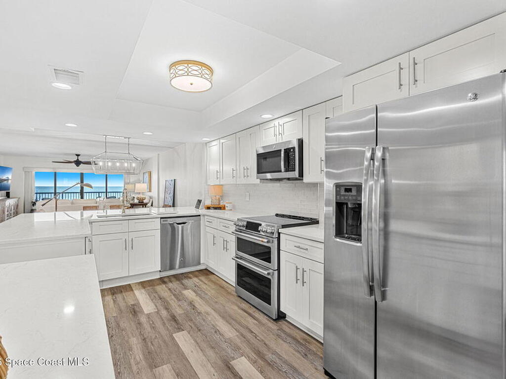 Wake up to the sound of the waves and end your day with salty sunsets in this breathtaking, fully renovated, direct oceanfront condo. Designed for everyday luxury, the kitchen showcases a rare double-island layout, quartz counters throughout, eat-in space, breakfast bar, and a built-in wine & beverage nook. Tile floors run seamlessly throughout. Impact windows and hurricane shutters provide peace of mind, and the in-unit washer/dryer adds convenience. Enjoy premium amenities including a heated pool, clubhouse, private beach access, under-building garage parking with private storage, and the ability to install an EV charger. All within a well-run building known for a proactive board and strong financials. Coastal living that feels elevated without the luxury price tag. Stop paying for vacations to paradise and buy your forever paradise today! Close to all things dinging, shopping, & travel.
