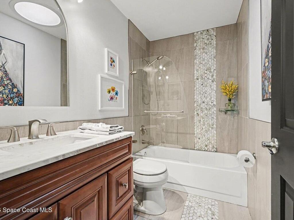 Most Sought Neighborhood in Brevard! Immaculate POOL home with Lots of upgrades including IMPACT Windows that sits on a sprawling lot in the heart of Suntree. inside you will find a home that has been meticulously upgraded throughout. The remodeled kitchen is a chef's dream, featuring top-of-the-line stainless steel appliances, leather granite countertops, and custom cabinetry for storage. The elegant formal living and dining rooms are perfect for entertaining, while the separate family room with fireplace provides a comfortable space for relaxation. The large owner's suite is complete with custom walk-in closets and a spa-like en-suite bathroom. Step to the patio oasis, where you'll find a sparkling pool surrounded by lush landscaping. Located near 2 Golf Courses, shopping, restaurants and A-rated schools. New Paint all around including ceilings. Wood Tile Flooring throughout the house installed in 2024. New High Efficiency AC in 2024. Complete house sealing with safety in mind.