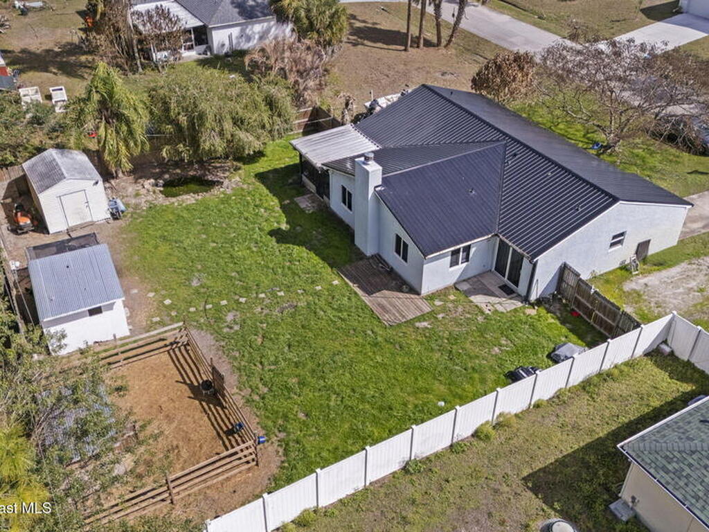 Well-maintained 3BR/2BA home in SE Palm Bay with major recent upgrades. Features a brand-new metal roof with gutters (Nov 2025) and full level-5 impact windows and doors (Nov 2023) for superior storm protection and potential insurance savings. Solid block construction with a functional split floor plan and bright natural light throughout. Located on a spacious lot in an established neighborhood with no HOA, close to schools, shopping, dining, and major roadways. Big-ticket items already done--move in with confidence.