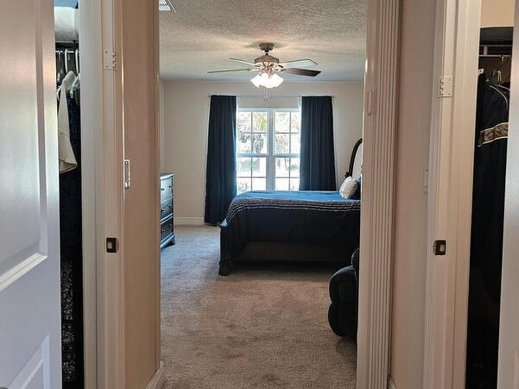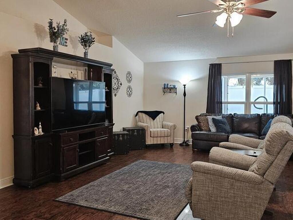 Tucked away at the end of the road, this well‑maintained home offers exceptional privacy while keeping you close to everything West Melbourne has to offer. Thoughtfully designed split floor plan includes three bedrooms plus a versatile flex room--perfect for an office or potential fourth bedroom. Vaulted ceilings enhance the spacious feel of the main living areas, where the family room flows seamlessly into the kitchen, breakfast nook & formal dining room. Stylish, durable luxury wood‑plank vinyl flooring throughout the main living areas & upgraded carpet in bedrooms & flex room. Primary suite features two walk‑in closets & an ensuite bath complete with double sinks, a walk‑in linen closet, & a separate shower. Accordion hurricane shutters for added peace of mind. Outdoor living shines with a screened‑in lanai & spa, newly added paver areas, & a large fully fenced backyard. Additional conveniences include an electrical hookup for a generator, Roof 2023, A/C 2023, HWH 2025
