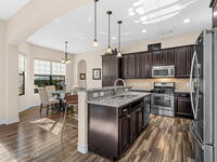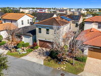 Exceptional walkability meets timeless design in this beautifully crafted home located in the heart of Arrivas Village. Drawing inspiration from historic Florida architecture, this residence offers character, comfort, and modern efficiency including solar panels to help lower monthly utility costs.Designed for flexible living, the home features four bedrooms, four and a half baths, plus a versatile bonus space. The main living area is bright and open, with a spacious kitchen centered around a large island that flows into an expansive living room. Oversized doors and windows invite natural light and open to a private courtyard, creating a seamless indoor-outdoor experience ideal for relaxing or entertaining.A first floor bedroom with a full bathroom provides an excellent option for guests, extended family, or a home office. Upstairs, the primary suite offers a private balcony, dual walk-in closets, and a luxurious bathroom with a soaking tub, walk-in shower, and double vanities