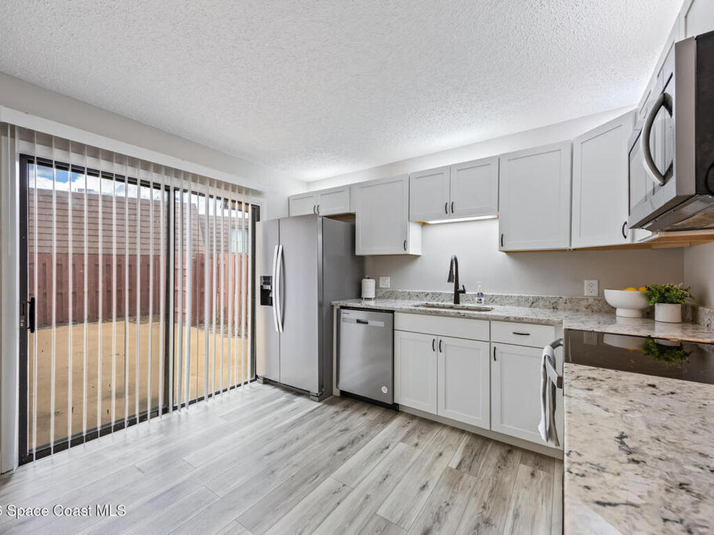 Prepare to be wowed by this spectacular, move-in-ready home that has been REMODELED & RENOVATED, making it truly turnkey for its next owner. A 2025 AC adds peace of mind, while the remodel completed approximately 3 years ago includes like-new carpeting located on the stairway, second-floor landing, & bedrooms. The entire 1st floor features luxury vinyl flooring & offers a smart, functional layout, including a washer/dryer conveniently located in the1st floor half bath, a linen closet, & a deep, useful storage closet. The kitchen/dining area provides ample space for everyday living & is filled with abundant natural sunlight. Step inside through a large, private courtyard that offers endless possibilities perfect for gardening, relaxing, or creating an inviting outdoor lounge space. Newer appliances & four sliding glass doors enhance the home's open, airy feel. The HOA includes internet & water, adding to the affordability & ease of living here. Come & see this place today.