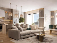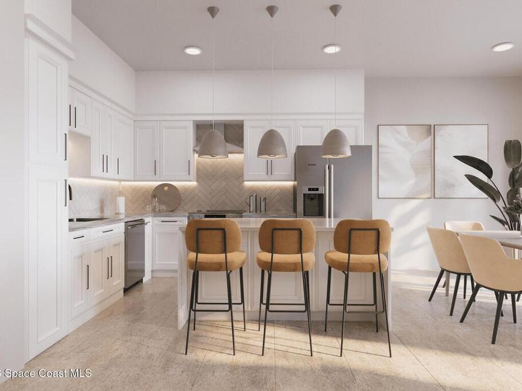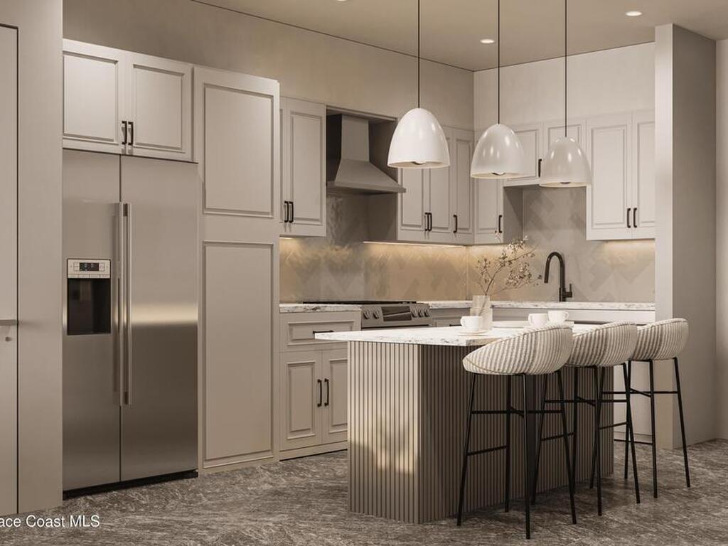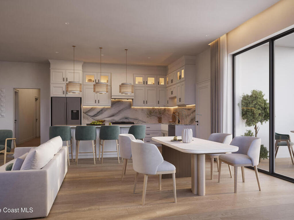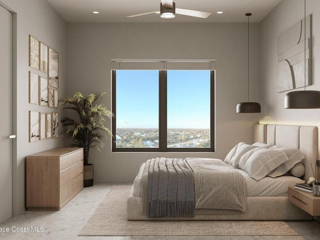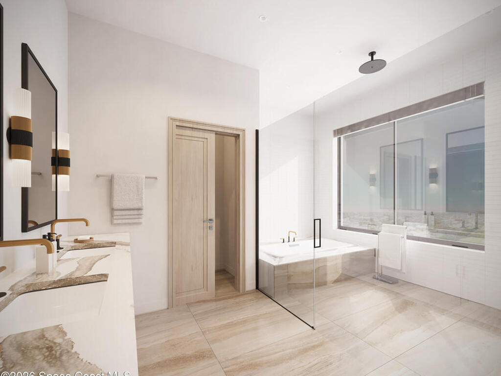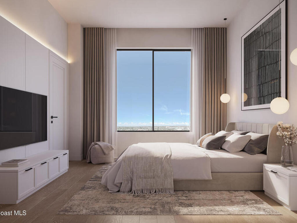 Discover the Trident Residence, a premier mixed use destination situated on the west side of Highway A1A directly across from the beach. Scheduled for completion in 2028, this fourth floor residence features 1, 826 square feet of curated luxury and captures breathtaking southwest sunset views through oversized windows. The three bedroom, two bath floor plan offers a split bedroom design for optimal privacy.Elegant interiors include stone and tile flooring, a kitchen island, and bold architectural lines. The primary suite serves as a tranquil retreat with a separate tub and shower. Step onto the expansive covered terrace to enjoy the coastal ambiance.Residents enjoy access to a resort style pool, sauna, fitness center, clubhouse, and dog park. This gated community features solid concrete construction and elevators. The monthly fee covers all amenities, cable, internet, and building insurance for a worry free lifestyle.