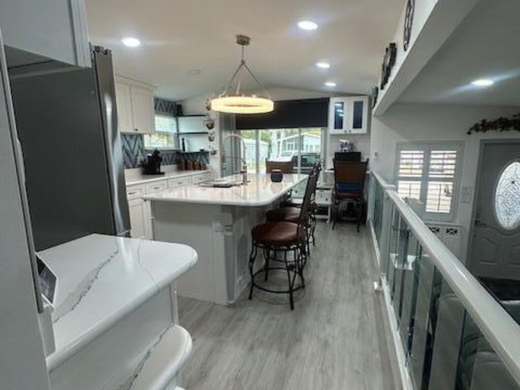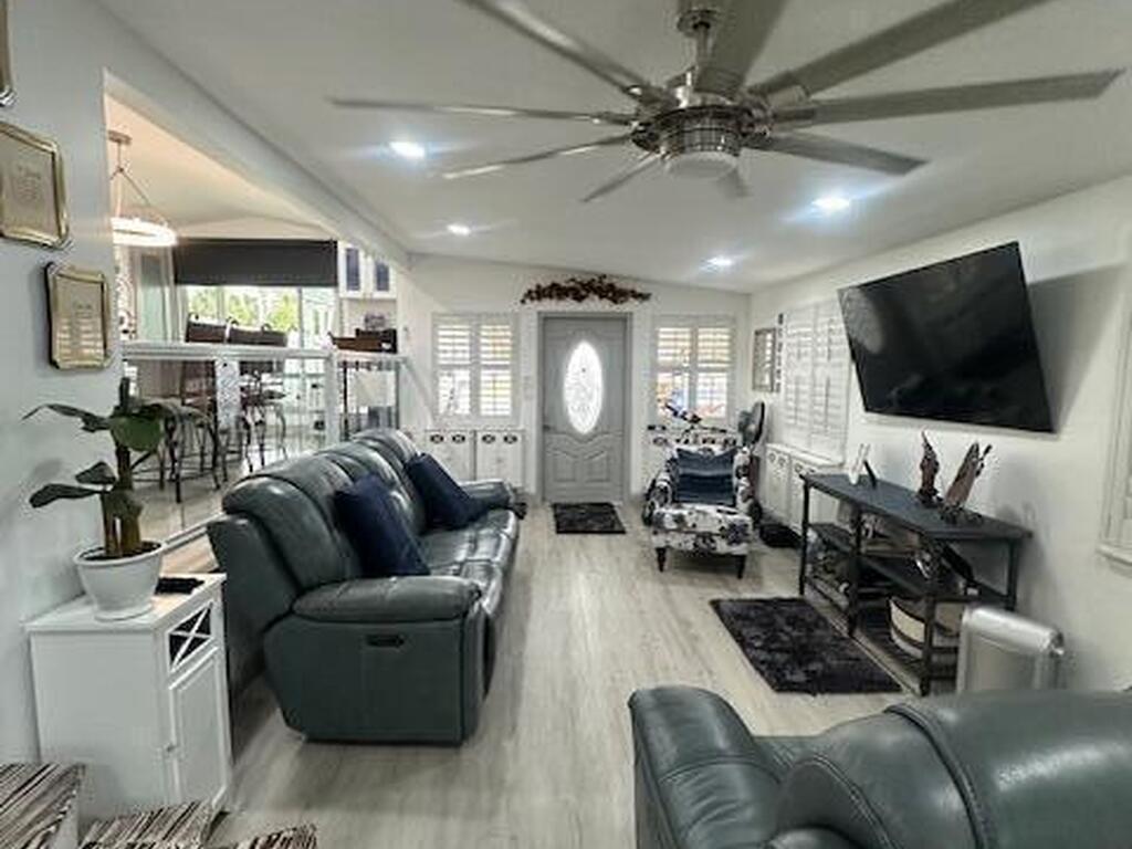 GORGEOUS home located in the in Great Outdoors on a quiet street close to all the 54 amenities in this community. Large covered port great for the RV, private vehicles, and gold carts with plenty of room left over for entertaining. Detached remodeled shed with full washer and dryer. All Brand new higher end appliances with full size dishwasher, computer work station area, brand new cabinets, counter-tops with undermount farmhouse sink. Custom marble herringbone tiled bathroom with stone floor. Large one bedroom with large closet space. Beautiful glass railing in between the kitchen and living room. Plantation shutters throughout. Big screened back porch for relaxing and enjoying the private wooded space behind large yard. The list goes on and on this is a MUST SEE.
