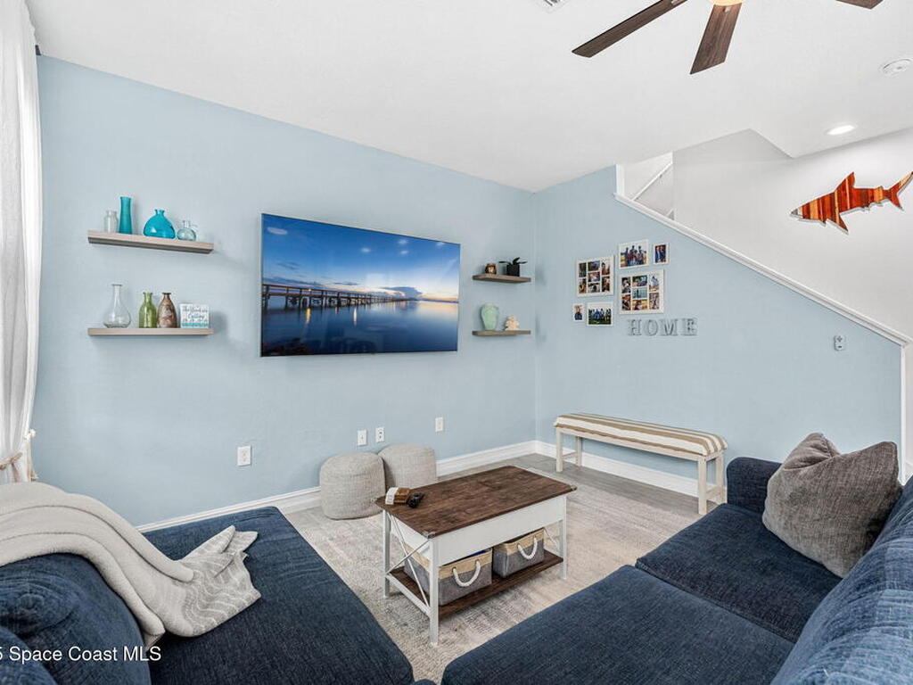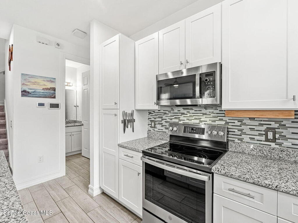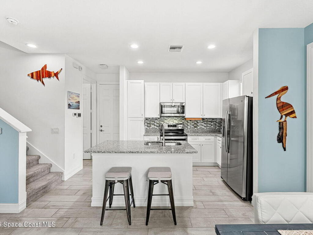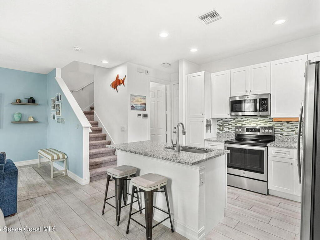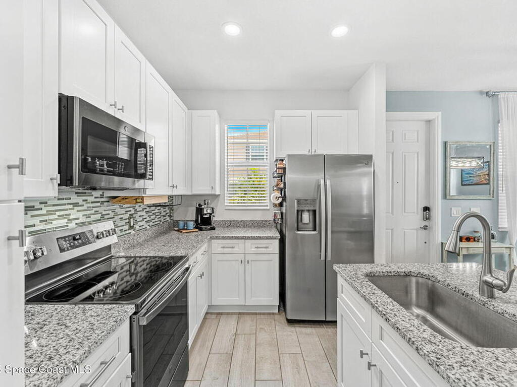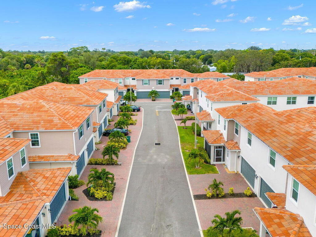 Imagine coming home to this gorgeous Nearly NEW Coastal Design Townhome! Nestled in the gated enclave, Riverwalk of Melbourne, this open concept floorplan boasts natural light & inviting neutral colors throughout. Spacious w/3 bedrooms, 2 & 1/2 baths and 2 car garage! Upgraded with beautiful wood-look tile floors and luxury carpet! Feel right at home preparing meals in this stunning well designed kitchen-upgraded white cabinetry, granite counters and GE Profile appliances. Built in 2022 and equipped with the latest energy efficient construction, modern smart home technology, and insulated Impact windows & doors. Add'l features/upgrades include tile roof, paver driveway, 8' doors, epoxy painted garage floors, and screened covered front porch to name a few. The community offers resort style amenities-pool, spa, fitness center & clubhouse! Just a short drive to our beautiful beaches, thriving EGAD & downtown Melbourne for shopping and restaurants and all the Space Coast has to offer!