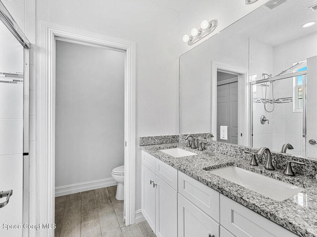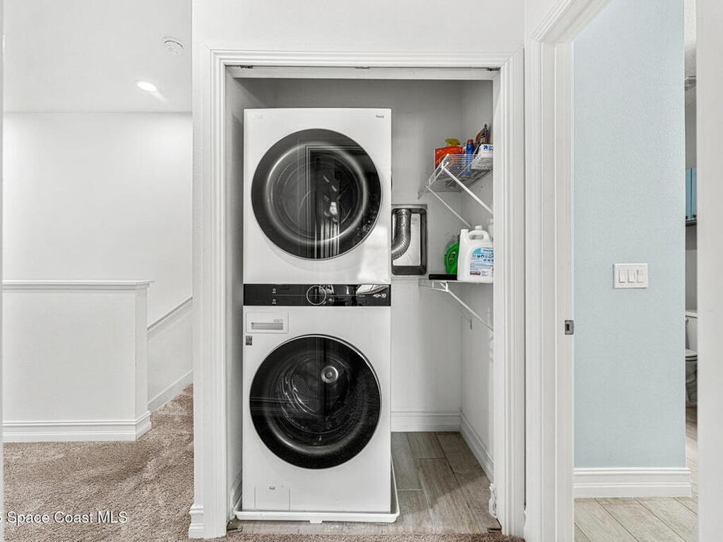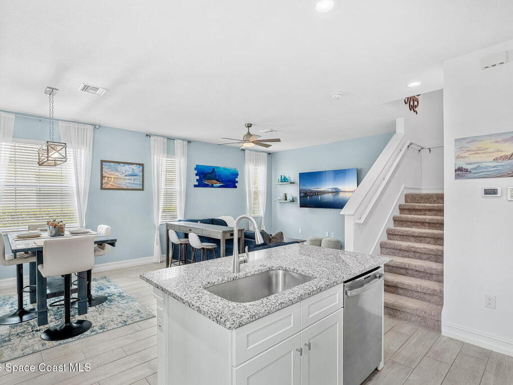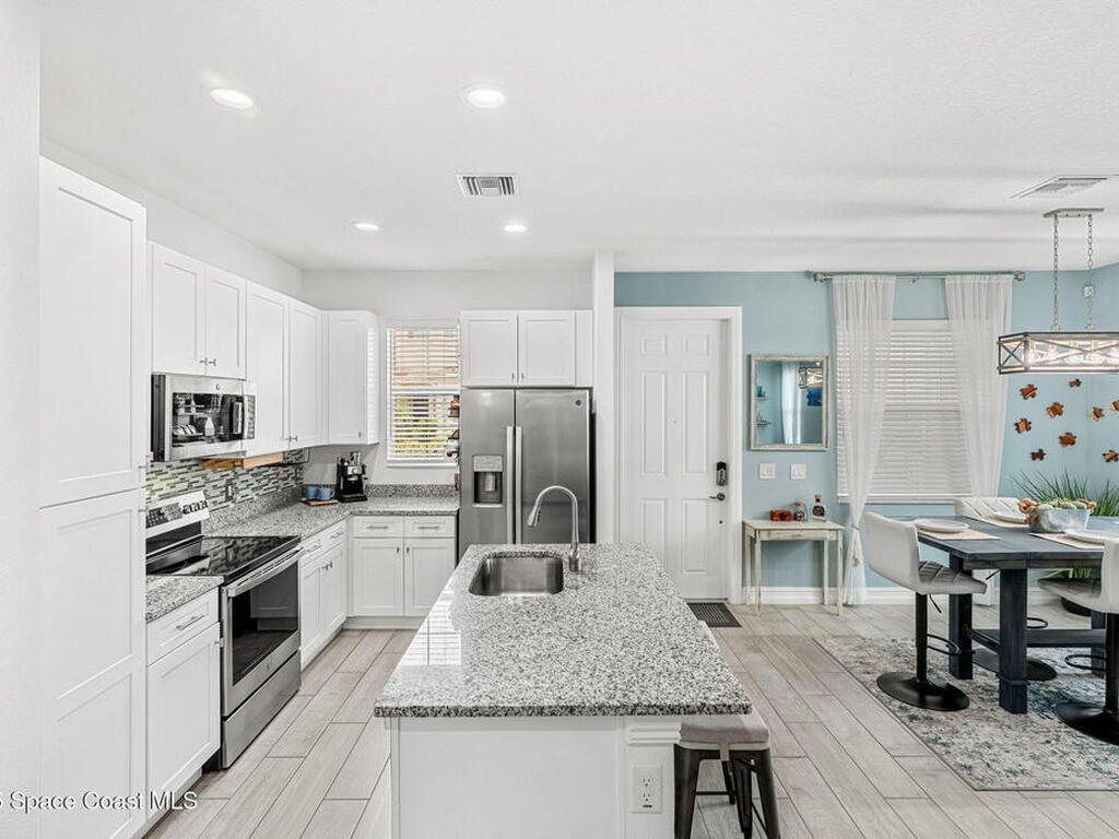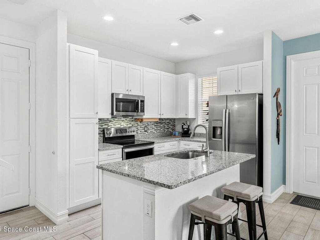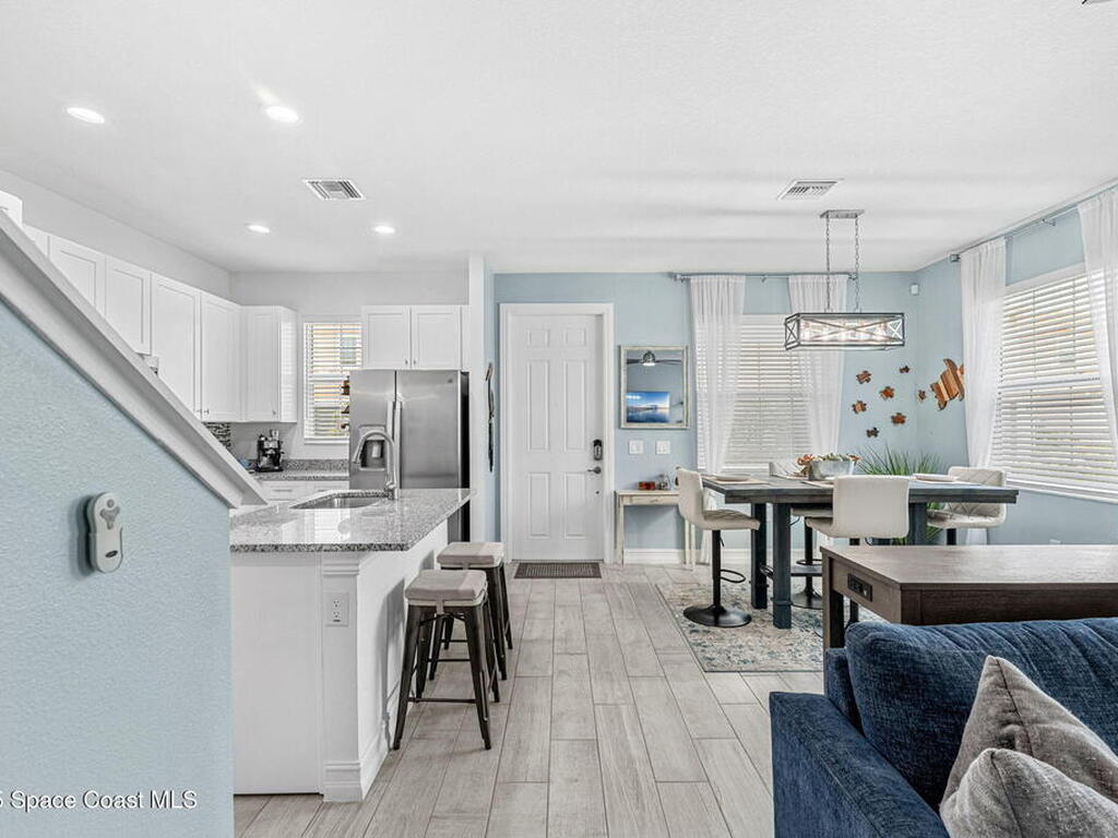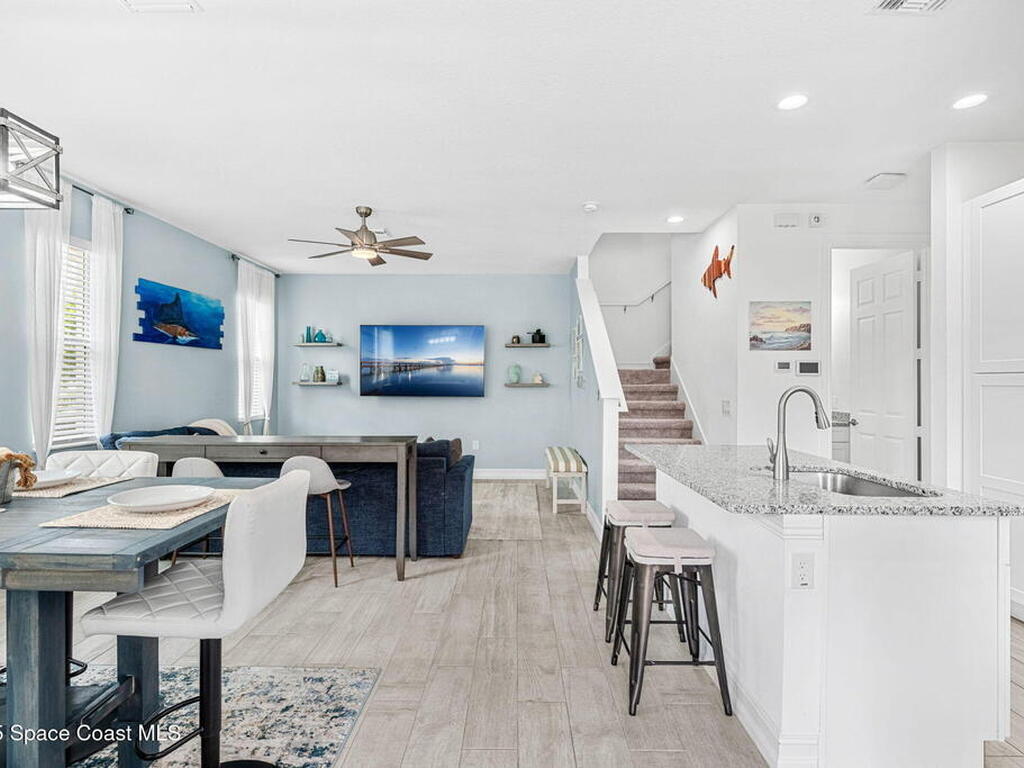 Imagine coming home to this gorgeous Nearly NEW Coastal Design Townhome! Nestled in the gated enclave, Riverwalk of Melbourne, this open concept floorplan boasts natural light & inviting neutral colors throughout. Spacious w/3 bedrooms, 2 & 1/2 baths and 2 car garage! Upgraded with beautiful wood-look tile floors and luxury carpet! Feel right at home preparing meals in this stunning well designed kitchen-upgraded white cabinetry, granite counters and GE Profile appliances. Built in 2022 and equipped with the latest energy efficient construction, modern smart home technology, and insulated Impact windows & doors. Add'l features/upgrades include tile roof, paver driveway, 8' doors, epoxy painted garage floors, and screened covered front porch to name a few. The community offers resort style amenities-pool, spa, fitness center & clubhouse! Just a short drive to our beautiful beaches, thriving EGAD & downtown Melbourne for shopping and restaurants and all the Space Coast has to offer!