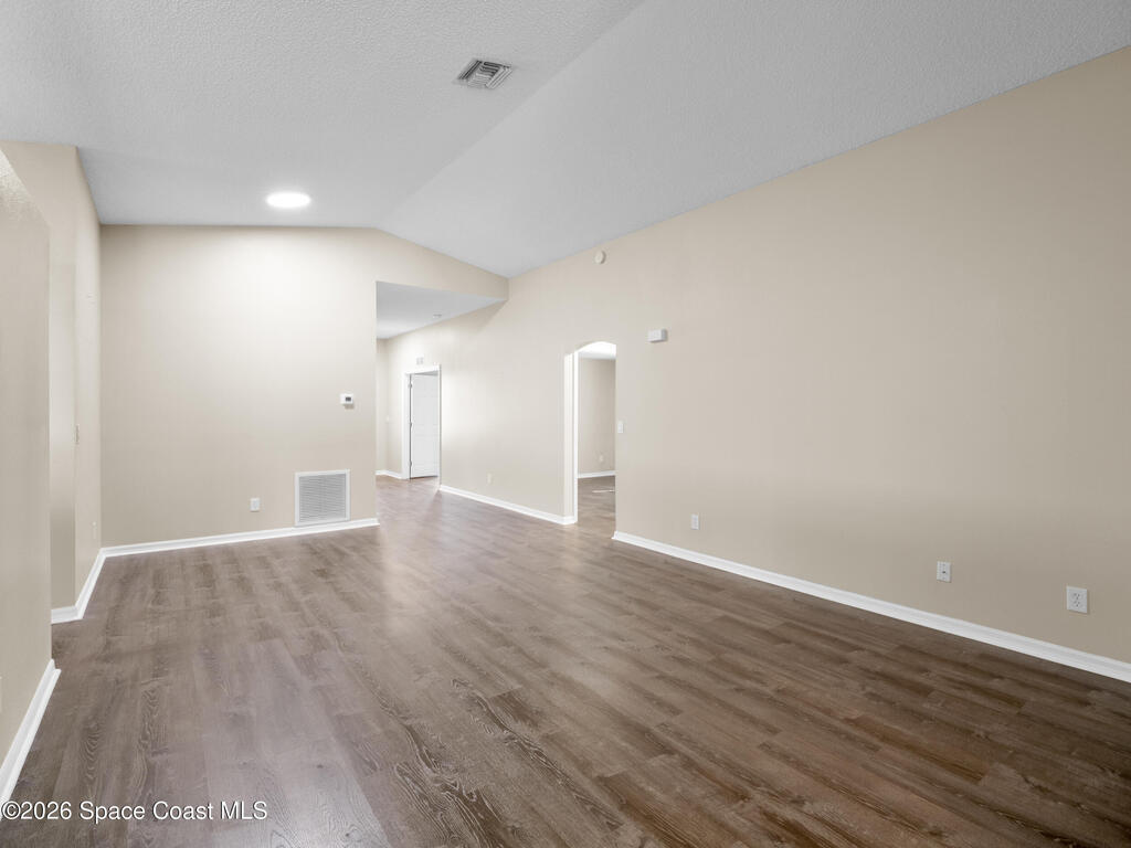 Beautiful lakefront living in this Viera home! A+ school schools Kitchen & baths fully renovated with new cabinets, gorgeous quartz countertops, sleek hardware, and faucetsNewly REMODELED Viera 4-BDRM lakefront property in A+ school district. Brand-new glass front door welcomes you into a home with stylish vinyl plank flooring throughout - no carpet! Kitchen & baths fully renovated with new cabinets, gorgeous quartz countertops, sleek hardware & faucets. Bathrooms also feature new glass-enclosed showers & toilets. Vaulted ceilings with open living & dining areas create a spacious atmosphere. The kitchen boasts a breakfast nook & large walk-in pantry. The sizable dining room provides access to a screened porch overlooking the lake. The primary suite offers lake views, a soaking tub, a separate shower & his-&-her closets. Laundry room off the kitchen. This home includes a 2-car garage. Enjoy the community pool and quiet streets, with close proximity to golf, shopping, dining, the new Wh