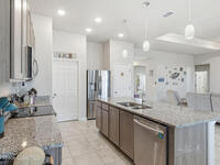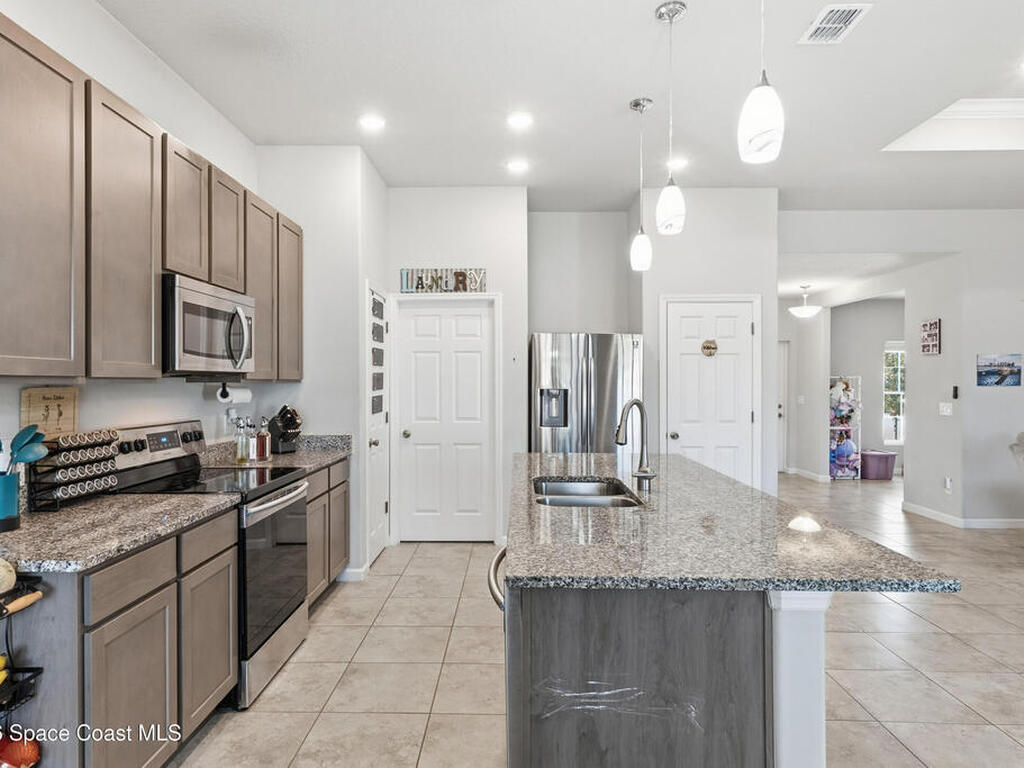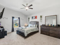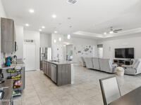 Beautiful Upgraded Home with Bright, Open Living Spaces. This stunning home showcases a stone‑accented French Country elevation and thoughtful upgrades throughout. An open concept design welcomes you with a private study and formal living room. The main living area features tray ceilings, refined trim molding, and abundant natural light. The gourmet kitchen offers a center island, elegant finishes, and an extended breakfast nook perfect for everyday dining. Expansive 12' sliding glass doors open to a covered porch overlooking a large, fenced yard, ideal for outdoor living. Additional enhancements include a whole‑home water softener and UV‑C germicidal lights in the AC system for improved air purification. Tile throughout the main area.