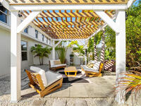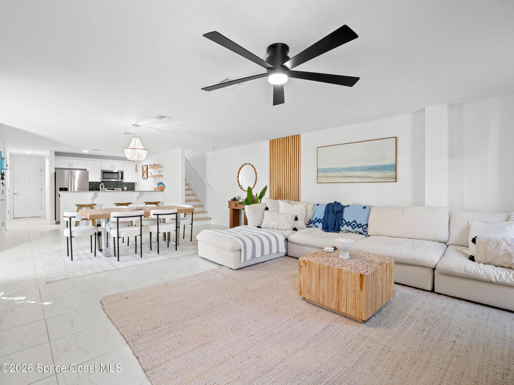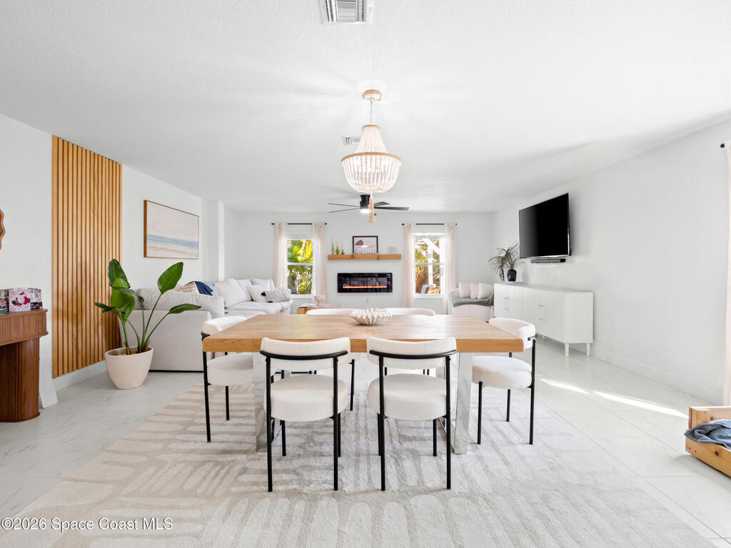 Located just 10 min. from Downtown Melbourne & from EGAD & 15 min. from the gorgeous Atlantic Ocean, convenience meets lifestyle at every turn. You may never want to leave. This home rests on a very private corner lot w/ a yard designed for both entertaining & unwinding--complete w/ a pergola, hot tub & cozy electric fireplace. Areca palms surround the space, creating total privacy, while a beautiful fence keeps Fido safely at home. Inside, tile floors flow seamlessly throughout the downstairs, welcoming you into a fully open-concept layout w/ a modern bohemian touch. The kitchen feat. granite countertops, ss appliances & white shaker cabinets. The staircase is lined with LVP that continues effortlessly into the upstairs bedrooms. The primary suite offers a generous, spa-like bathroom & a private balcony w/ river views. Inviting yet calming, peaceful yet perfect for gathering--this townhome feels like home. Lead the way... just follow the pavers and see the beauty for yourself.
