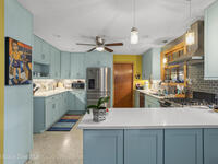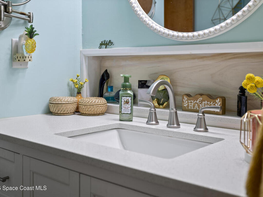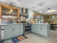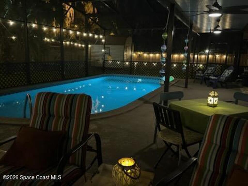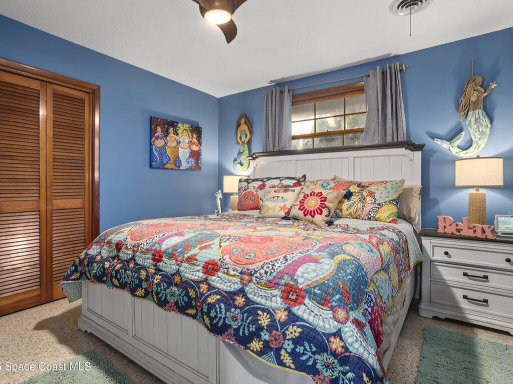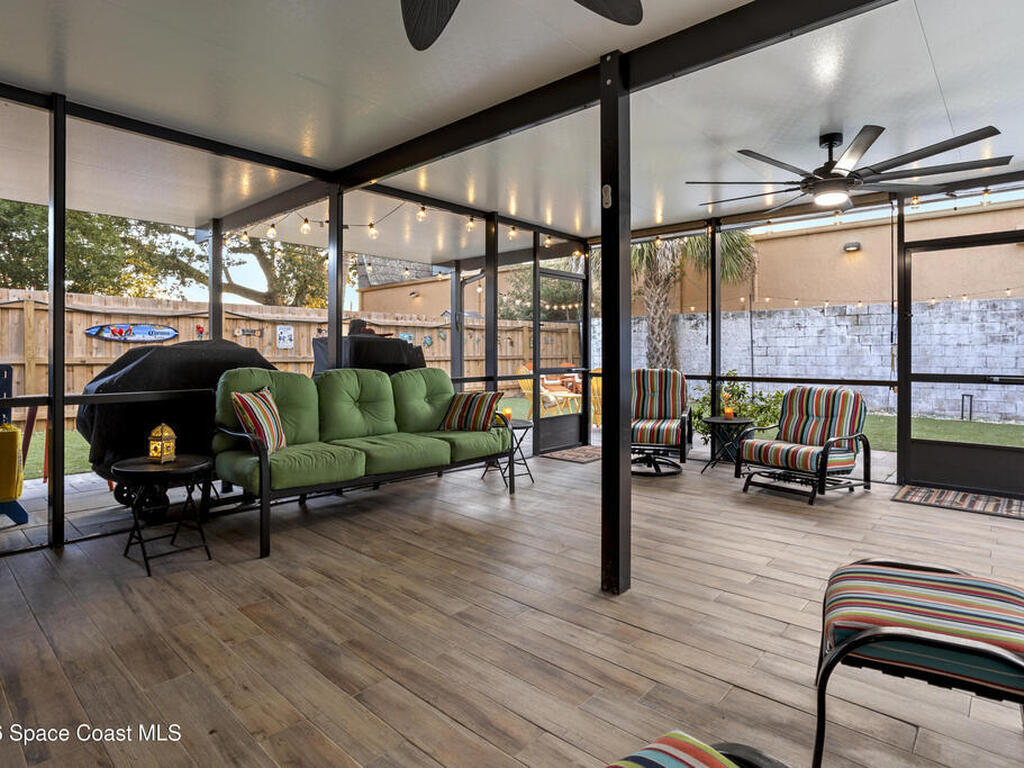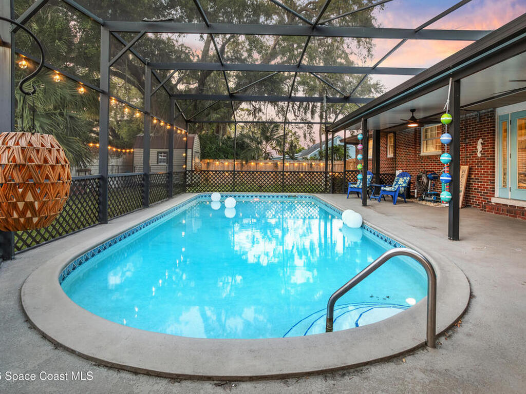 Welcome home to this modern contemporary retreat just steps from the Indian River. Designed for effortless living and unforgettable entertaining, this home features a 2024 roof, A/C 2022, updated plumbing, a new well and pump, and a whole-home on-demand generator. Beautiful terrazzo floor throughout the home. The kitchen shines with designer cabinets, quartz countertops, and a natural gas stove, and the primary suite is enhanced with a mini split system.Outdoors is the true showstopper--a very large pool area built for entertaining, complete with ambient lighting. Enjoy a huge screened-in back porch, paver deck, artificial turf, sodded front yard, new shed, and RV pad with water and electric. Pool upgrades include a new filter tank and salt cell. This is Florida living at its finest.
