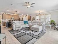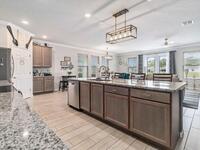 Beautiful 3-Bedroom 3 Bath Concrete Block Home with In-Law Suite & Lake Views in Bayridge! Welcome to this beautifully designed 2021-built concrete block home in the sought-after community of Bayridge! Featuring an open floor plan, this home offers 3 bedrooms, a home office that can be used as a 4th bedroom, and a private in-law suite with a kitchenette perfect for guests or multi-generational living.Enjoy the upgraded tile flooring throughout, a spacious kitchen with a large island, coffee bar, stainless steel appliances, and a double oven. The primary suite boasts French doors leading to the porch, a shower with double heads, and a walk-in closet with upgraded shelving. The family room features French doors opening to the expansive full-length patio, where you can take in the breathtaking lake views.