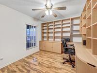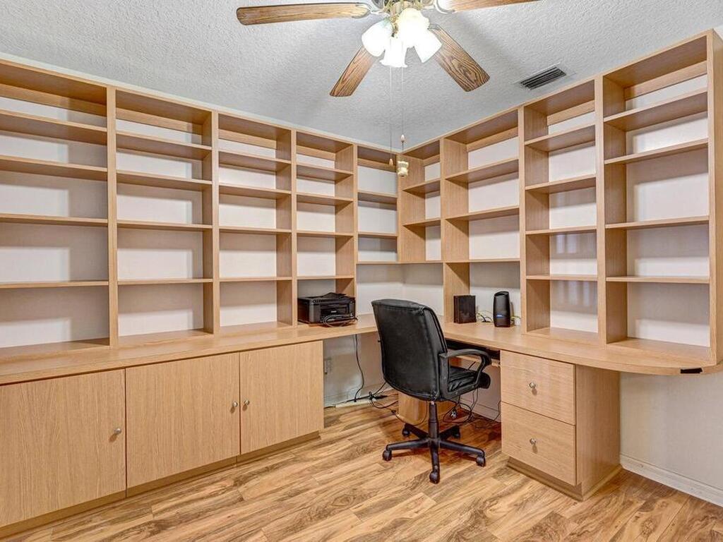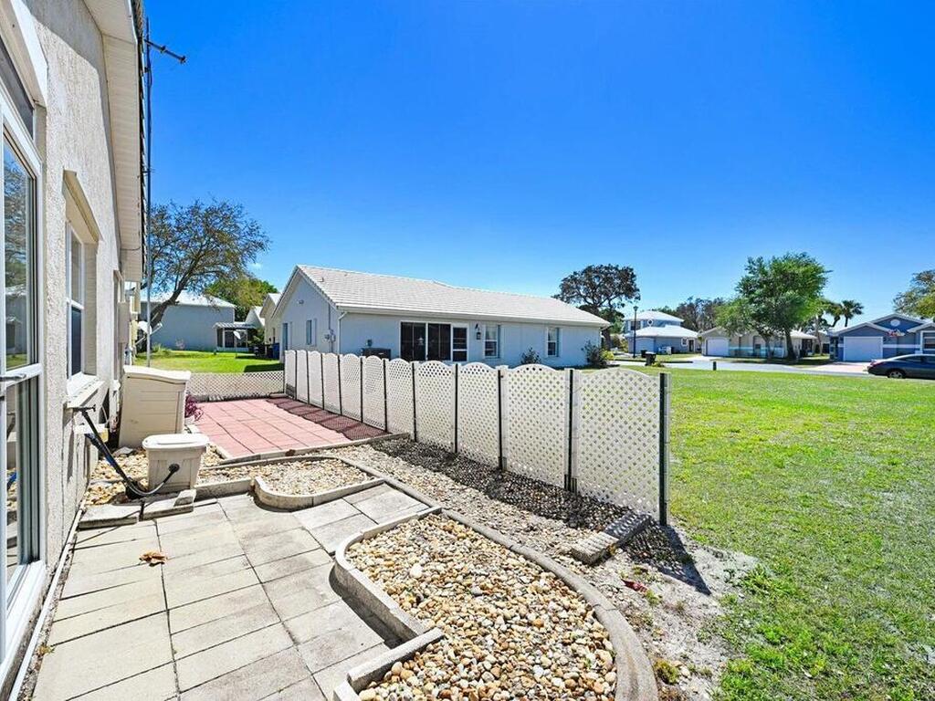 This home in Bermuda Walk Community is ready to move into! This phase of the community is concrete block construction which gives it extra value. It feels much bigger than the square footage would make you think. Vaulted ceilings and large windows throughout the home. Split bedroom floorplan. Extensive built-in cabinets for in-home office. Tiled screen porch with vinyl sliders for cooler months. Second screened porch on the back. Home comes with a water filtration system and home warranty on appliances. Kitchen is large with lots of cabinets and dining space. Wonderful convenient community pool. This home is perfect for the low-maintenance life-style!