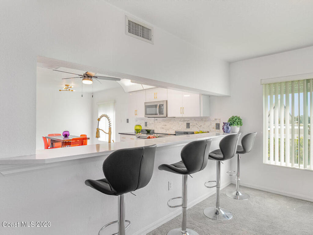 This is the Home you've been waiting for!! Appraised in January 2026 and priced at value!! This is a unique end unit with breathtaking unobstructed views of the Banana river. Enjoy a privilege few can gloat, wake up to having coffee on your private balcony watching dolphins play as sun glistens on the water or wind down with a glass of wine as the sunsets.The living space includes an one of a kind wine/coffee bar. The extra large owners suite features 2 walk-in closets, oversized modern ensuite bathroom with lots of storage, makeup vanity with builtin Bluetooth speakers and LED lighting creating a private oasis. Furry family members, also have their own built-in elevated doggy wash and grooming area.This property comes with 2 under building parking spaces complete with private storage lockers and deeded boat slip. All of this is nestled in the heart of Cocoa Beach conveniently and centrally located off the beaten path on the river. Don't miss the opportunity!