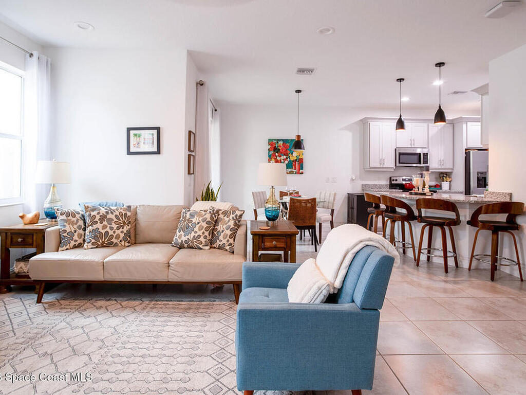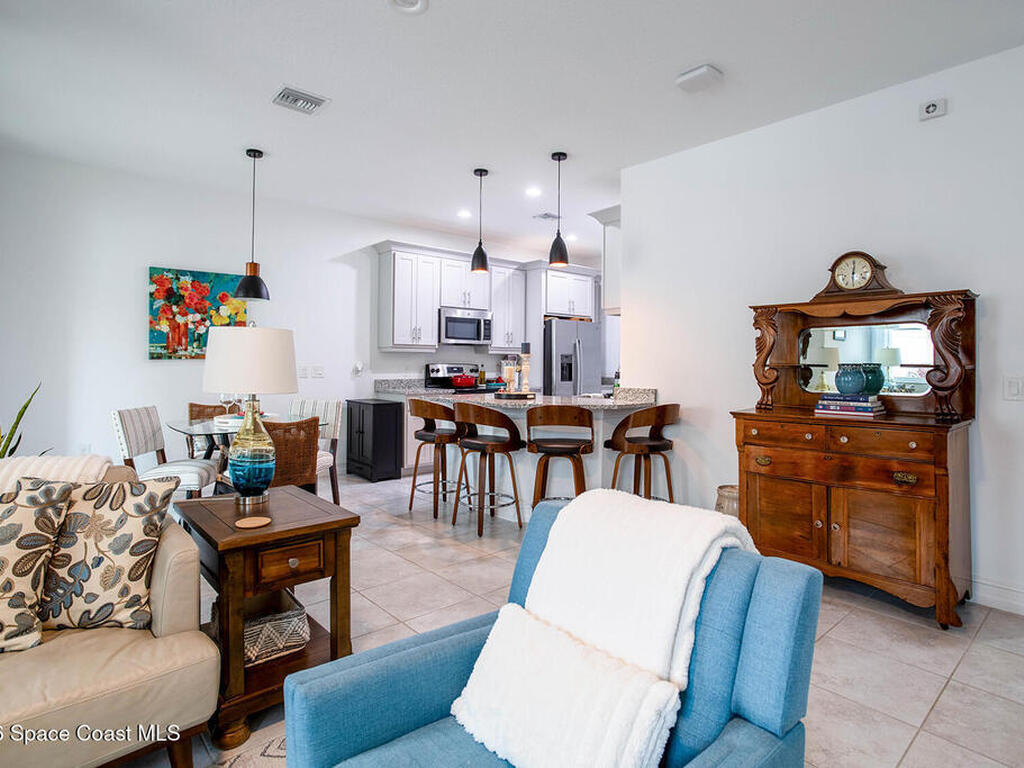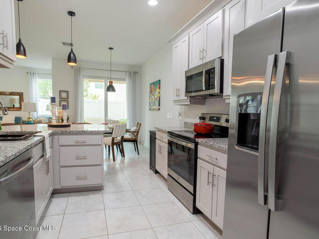 Beautiful, well-maintained townhouse with numerous upgrades. This townhouse features an upgraded kitchen with dove gray cabinets and lighting, a new dishwasher, and an open floor plan with high ceilings. The first floor includes a guest bathroom, ceiling fans in the living room, and a patio. The kitchen downstairs and bathrooms have tile flooring, while luxury vinyl flooring is found throughout the upstairs area.This 3-bedroom, 2.5-bathroom townhouse offers 1, 573 square feet of living space, a 2-car garage, and a paver back patio with a 6-foot PVC private fence, perfect for entertaining. The community provides resort-style amenities such as a pool, hot tub, sauna, gym, and clubhouse. Riverwalk of Melbourne is conveniently located just a few miles away from the beach and I-95, as well as close to shopping and dining options.