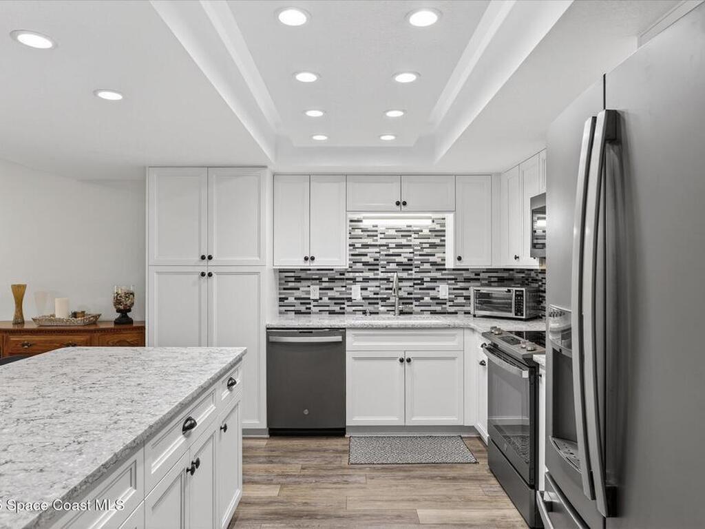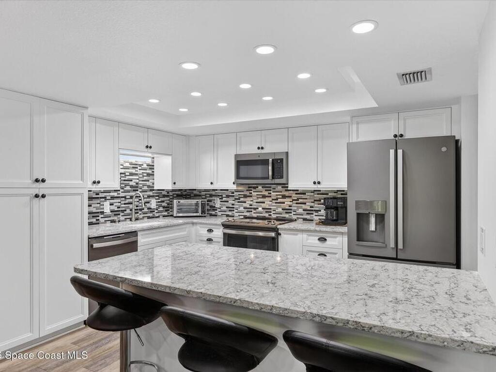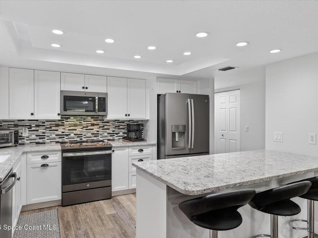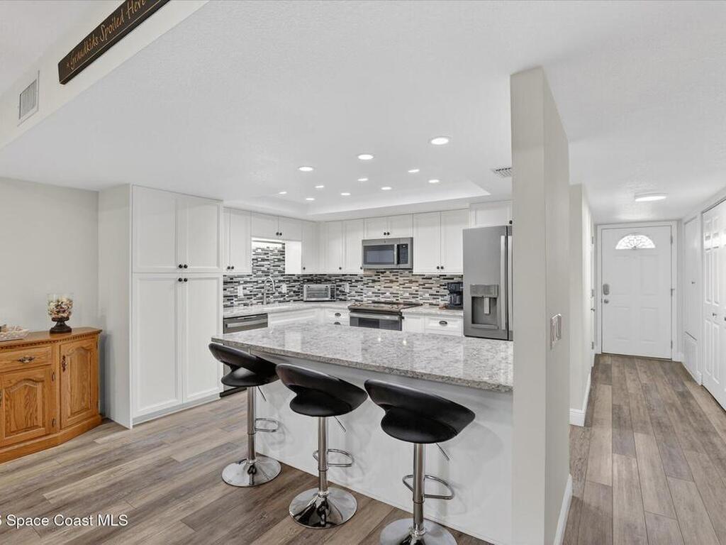 Completely remodeled from the studs up when the owners purchased it, this move-in-ready home blends modern style with thoughtful upgrades throughout. Luxury vinyl plank flooring flows through the main living areas, while the stunning kitchen features granite countertops, GE appliances (3 years old), custom cabinetry with soft-close doors and pull-out drawers, custom lighting, and exceptional pantry storage. All bathrooms have been fully remodeled with floor-to-ceiling tile. Each bedroom offers large walk-in closets, and a convenient laundry chute on the 2nd floor adds everyday functionality. Additional features include impact windows upstairs, newer roof and water heater, fully screened-in back patio with no rear neighbors, and a new irrigation system currently being installed. Minimal HOA includes garbage service, exterior insurance, lawn care, pest control, fertilization, and exterior maintenance. Walking distance to the beach. See your New Home Today!