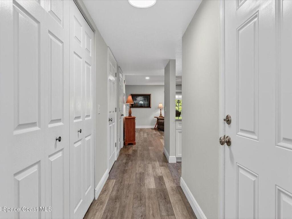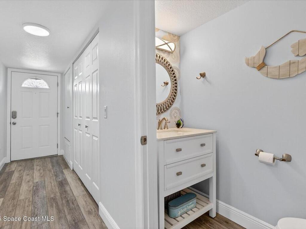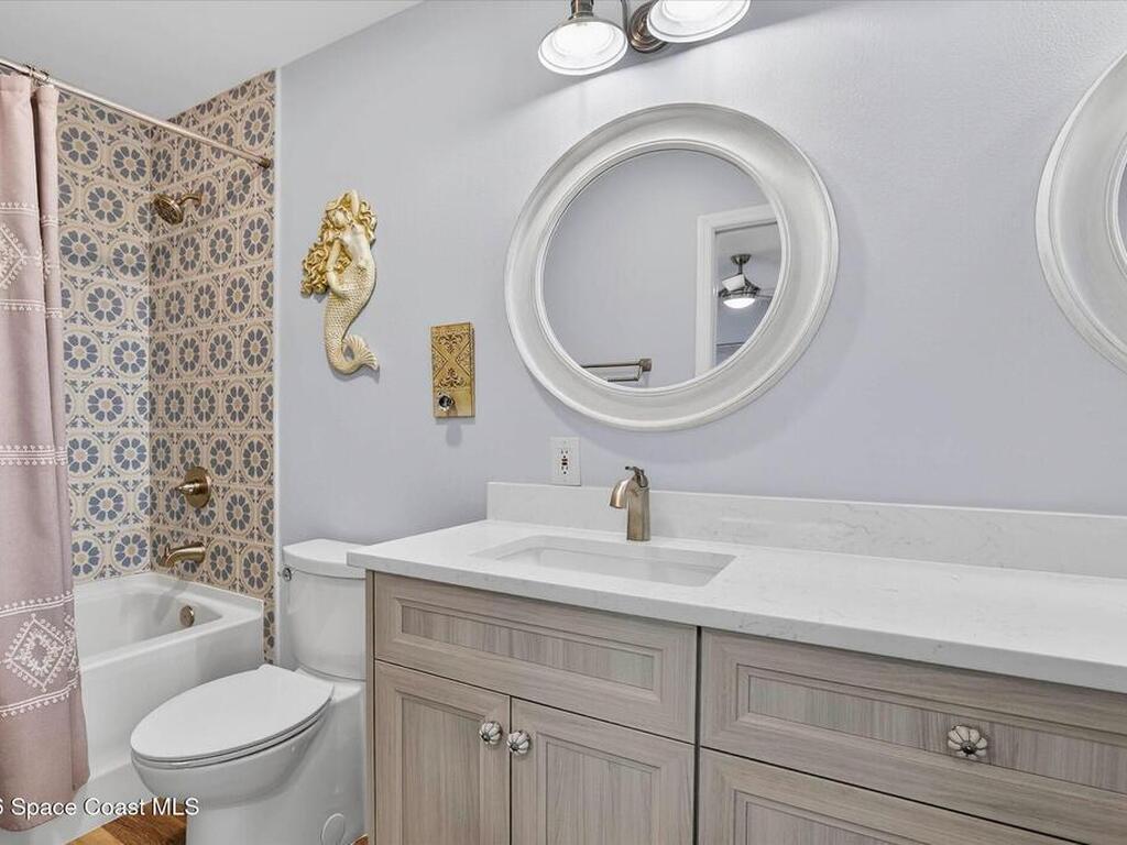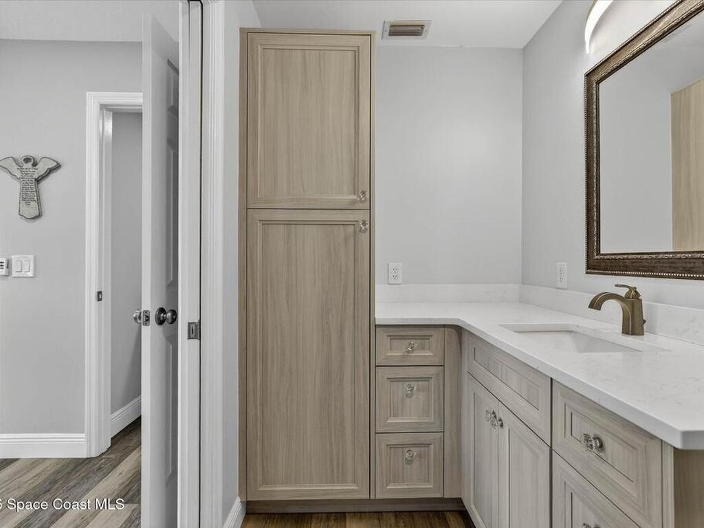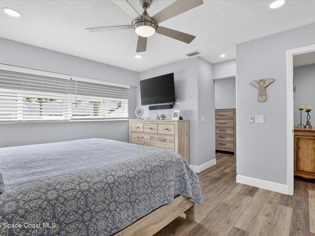 Completely remodeled from the studs up when the owners purchased it, this move-in-ready home blends modern style with thoughtful upgrades throughout. Luxury vinyl plank flooring flows through the main living areas, while the stunning kitchen features granite countertops, GE appliances (3 years old), custom cabinetry with soft-close doors and pull-out drawers, custom lighting, and exceptional pantry storage. All bathrooms have been fully remodeled with floor-to-ceiling tile. Each bedroom offers large walk-in closets, and a convenient laundry chute on the 2nd floor adds everyday functionality. Additional features include impact windows upstairs, newer roof and water heater, fully screened-in back patio with no rear neighbors, and a new irrigation system currently being installed. Minimal HOA includes garbage service, exterior insurance, lawn care, pest control, fertilization, and exterior maintenance. Walking distance to the beach. See your New Home Today!