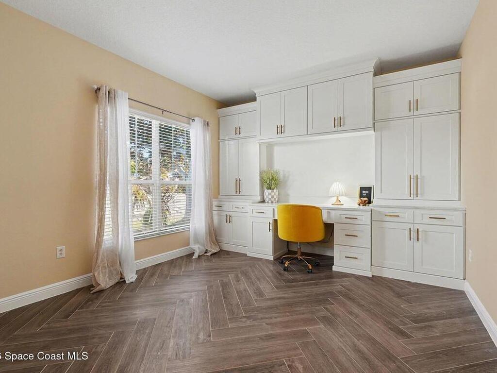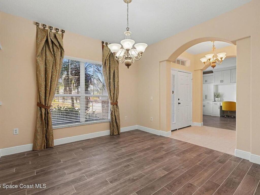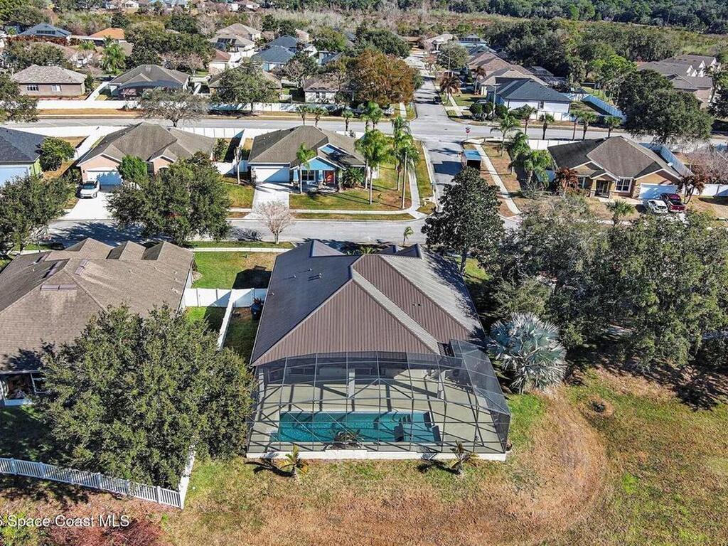 Step into your dream home, a beautifully designed property that offers four spacious bedrooms and two well-appointed baths. This residence boasts a brand new metal roof installed in 2025 and features a versatile flex room ideal for a home office with built-in cabinets. The luxurious primary suite includes his and hers closets, along with double sinks, a garden tub, and a separate shower. Enjoy gatherings in the formal dining room and a modern open kitchen equipped with stainless steel appliances, an island, and a cozy eat-in nook. The inviting living room seamlessly connects to an expansive pool deck, showcasing a stunning pool complete with a sun shelf and waterfall, all overlooking a serene natural preserve. Freshly painted interior (2026)and exterior (2024), this home is ready for you to move in! Neighborhood features a playground for the kids. With close proximity to Space Center and I95 this location makes your morning commute a breeze!