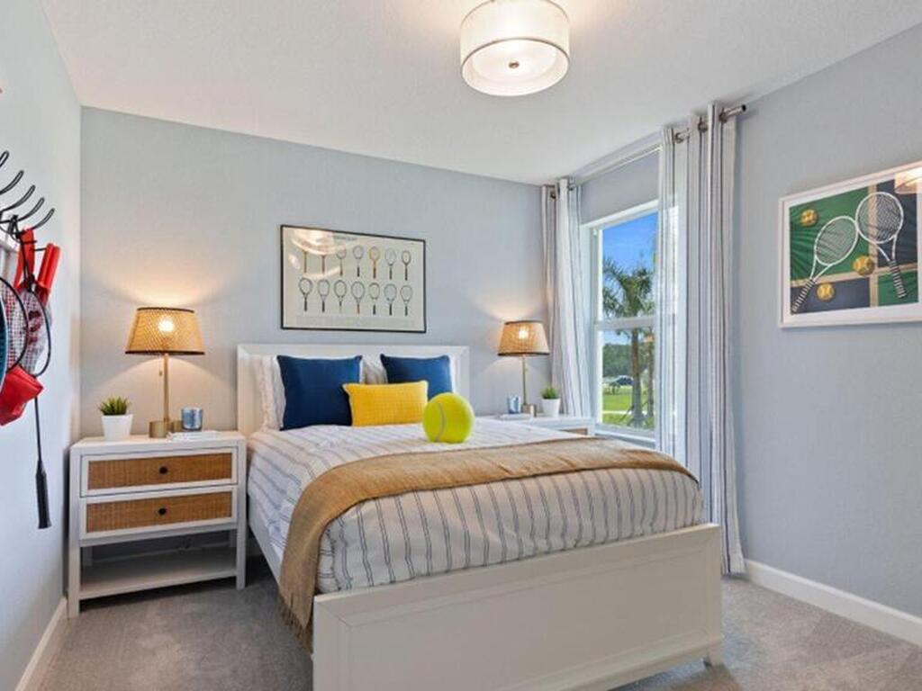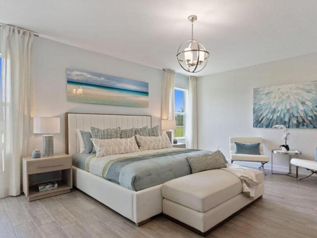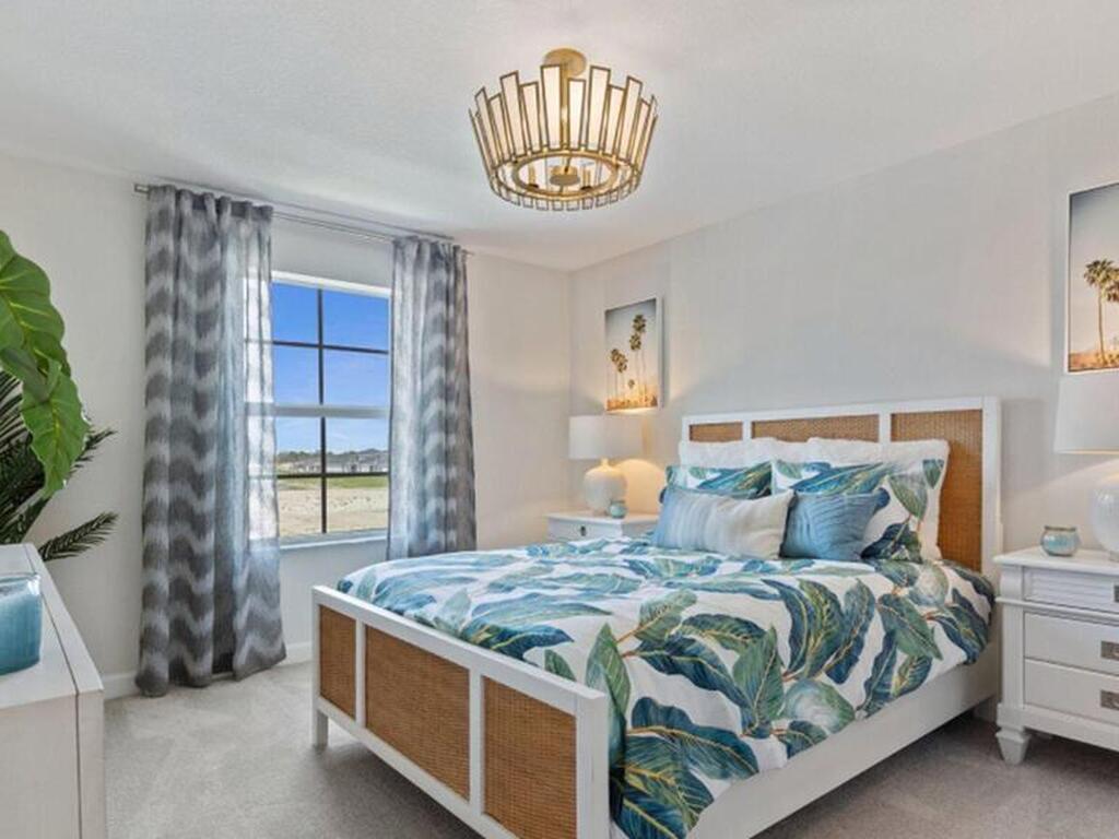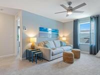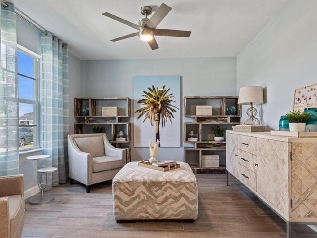 Welcome to Riverwood at Everlands! ~ l home features a smart layout that offers endless possibilities. A versatile den attached to the foyer by the front door while down the hall is an open concept living area with access to a LARGE trussed covered patio. The Owner's Suite is tucked into a corner at the first floor with a private bathroom and closet. While upstairs four bedrooms center around a loft. Home features IMPACT WINDOWS, gutters, quartz countertops, tile in all main level living areas, and more.