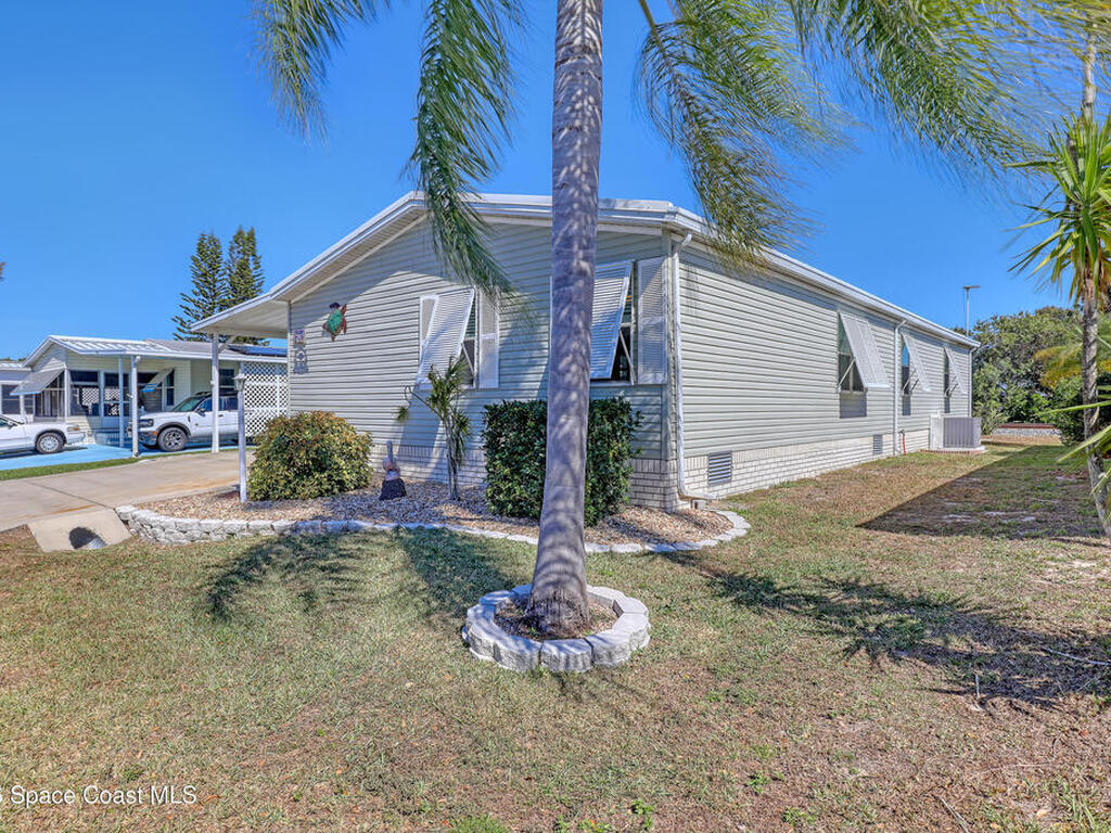 Train enthusiasts: Welcome aboard! This home is ready for your Florida lifestyle! Enjoy all the wonderful amenities in this vibrant 55+ community conveniently located between Melbourne and Vero Beach. Bright open Kitchen with center island - plenty of room for gatherings! Two living areas and split bedroom plan affords flexibility to meet your needs. No tiny rooms here with over 1500 living square feet! Screened lanai is 11x23; card party anyone? :-) Home built in 2003 with solid frame construction. Updates include metal roof 2019, Bahama shutters, AC & updated electric meter 2025, and leveling done about 10 years ago. Don't forget to check out the workshop/shed out back! Come on! What are you waiting for? Escape the frozen north!