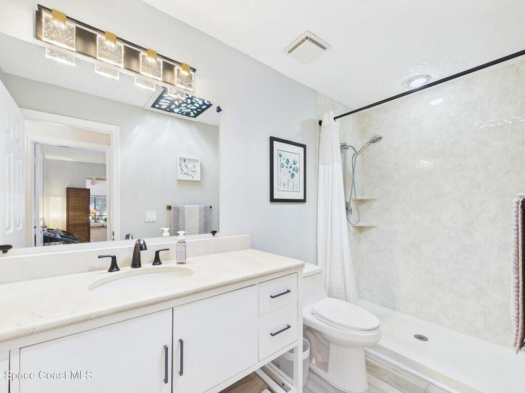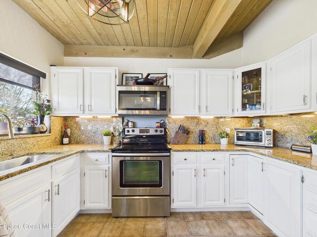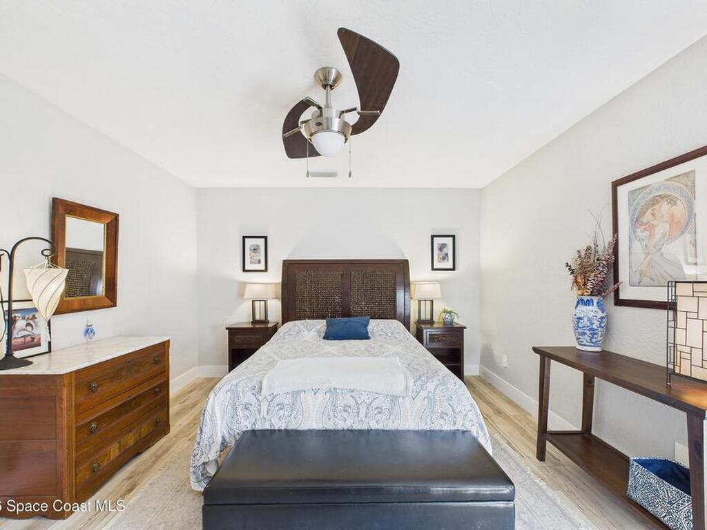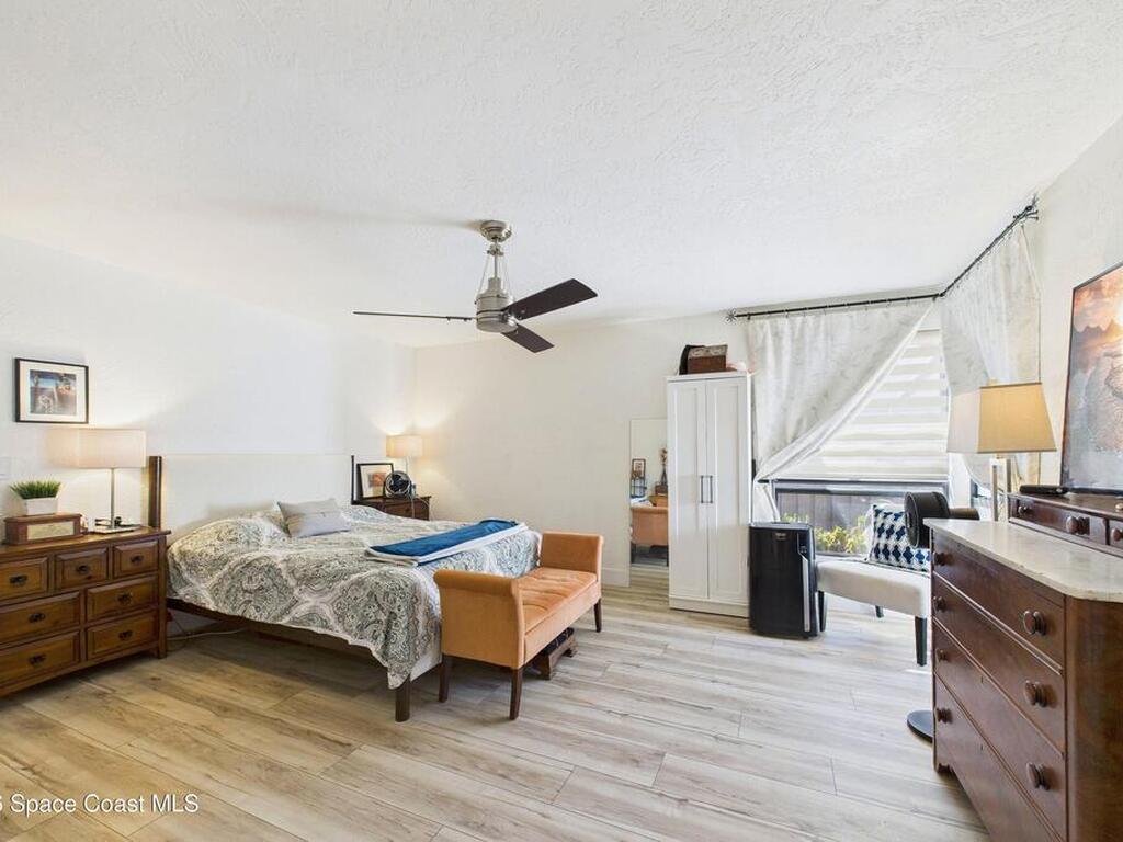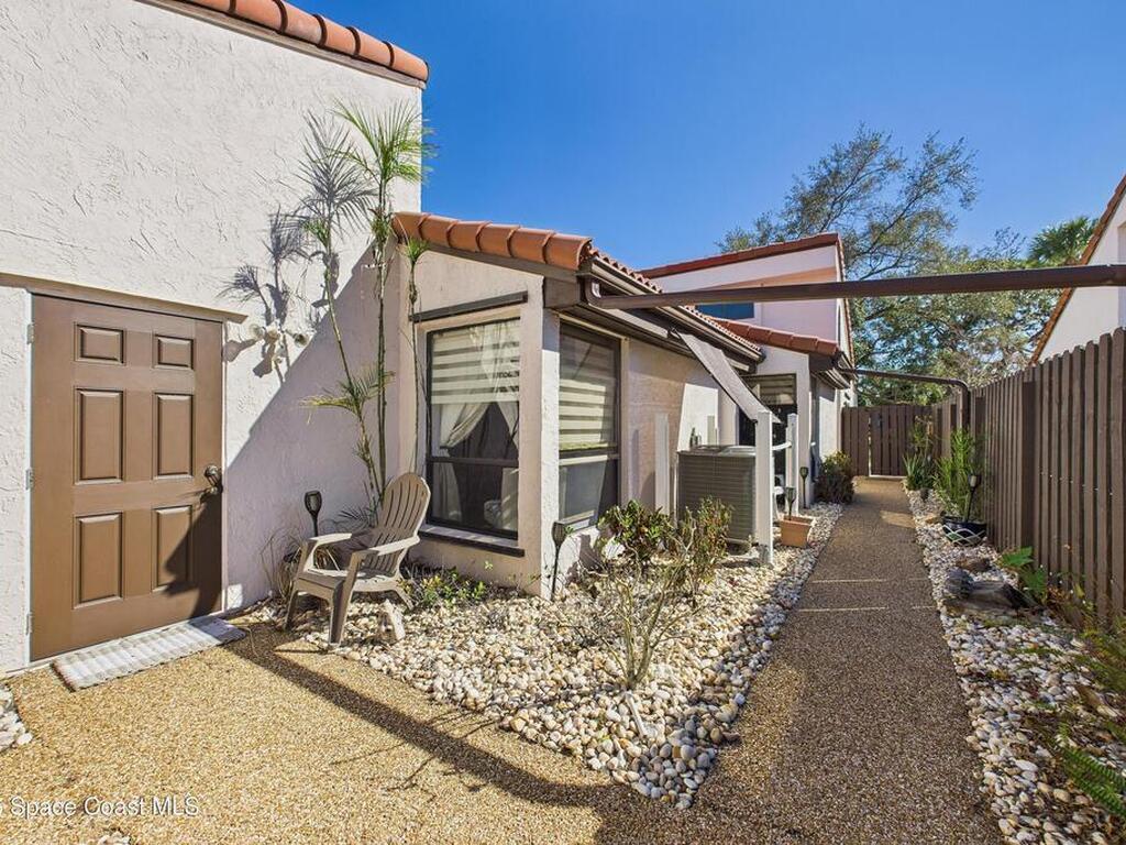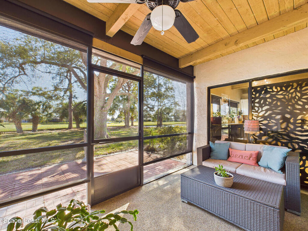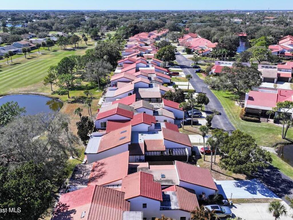 Move-in ready. Updated end‑unit, single‑story townhome with stunning lake and golf course views. This rare residence sits on a quiet, non‑through street and offers a serene backyard overlooking lake and the 5th fairway of the Suntree Classic Golf Course. Enjoy peaceful mornings with water views and visiting waterfowl right outside your door. The bright single‑story layout provides comfort and privacy, enhanced by the end‑unit position. A screened‑in porch extends the living space, perfect for morning coffee or sunset views over the fairway. Recent updates include renovated bathrooms, luxury wide‑plank vinyl flooring, fresh interior paint, a new water heater, and landscaped courtyard spaces. At the end of the street, a scenic walking path invites long strolls, bike rides, or golf‑cart outings through the neighborhood. Ideally located near Viera, Patrick's Space Force Base, and the beaches, Zoo. HOA included lawn care, exterior painting, driveway maintenance, pool.