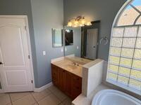 Introducing a stunning 5-bedroom, 3-bathroom house located on an oversized corner lot in WINGATE ESTATES. This spacious home features a 2 1/2-car attached garage for convenient parking. Downstairs offers 4 bedrooms, 2 bath. Walk upstairs and you have a 1bd/1bth + a bonus room. Cook all your favorite meals in this gorgeous kitchen with stainless steel appliances. Step outside to enjoy your own private pool with a relaxing spa w/ a rock waterfall, perfect for unwinding after a long day. Take in the serene water view from your backyard or head to the community clubhouse to socialize with neighbors. Stay active with access to the community tennis courts and a hiking trail. Small dogs accepted no cats. Pet rent may be required. Household pets, Service Animals (SA), and Emotional Support Animals (ESA) are subject to a pet screening. Renter's insurance required. LAWN AND POOL MAINTENACE INCLUDED IN RENT.