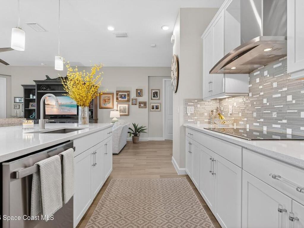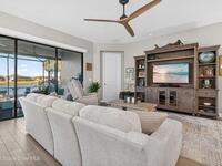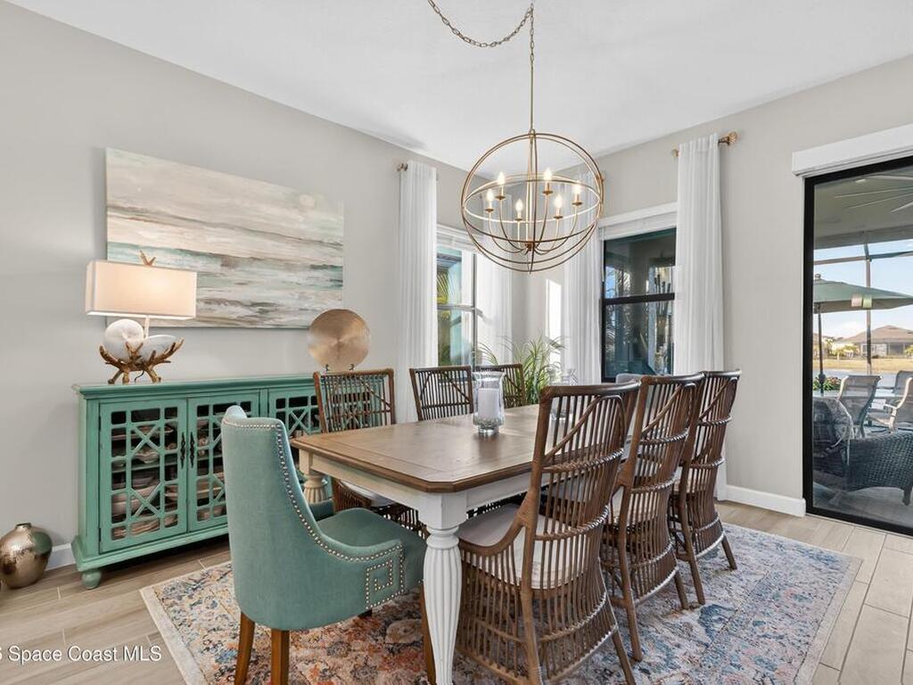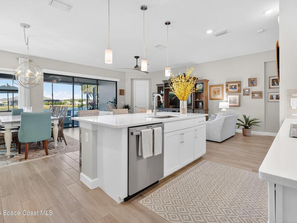 Waterfront Luxury Defined in this rare single-story gem, boasting one of the most expansive lake views in the community. Forget maintenance; this home is about pure enjoyment. The star of the show is the massive, upgraded paver lanai--an expensive, extended outdoor living space featuring soaring ceilings and a sleek electronic hurricane screen for effortless protection because no one wants to move lawn furniture. Inside, the ''no carpet'' lifestyle shines with premium light wood-look tile throughout. The kitchen is a showstopper: quartz countertops, 42-inch designer cabinets, a massive social island, and high-end stainless appliances. Retreat to a private owner's suite or utilize the flexible 3rd bedroom with French doors as your executive office or hobby sanctuary. From the whimsical starfish accents in the laundry to the resort-style amenities & included lawn care, every detail is designed for high-end, low-stress living. This is the upgraded waterfront retreat you've been waiting for.