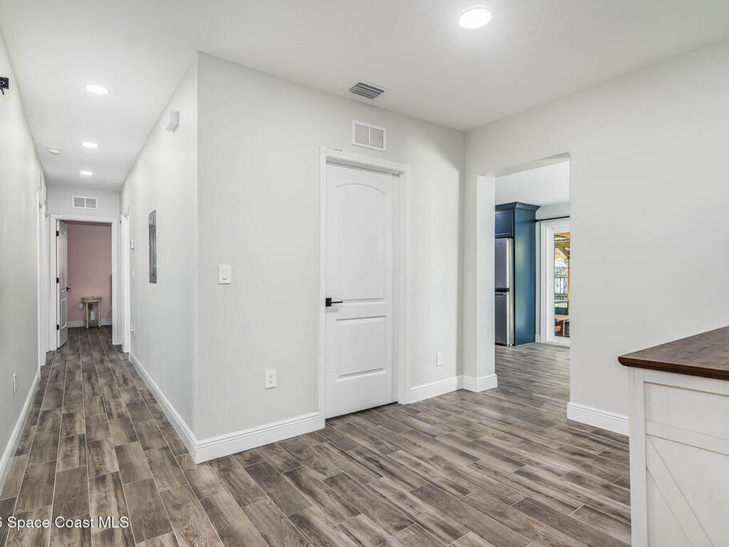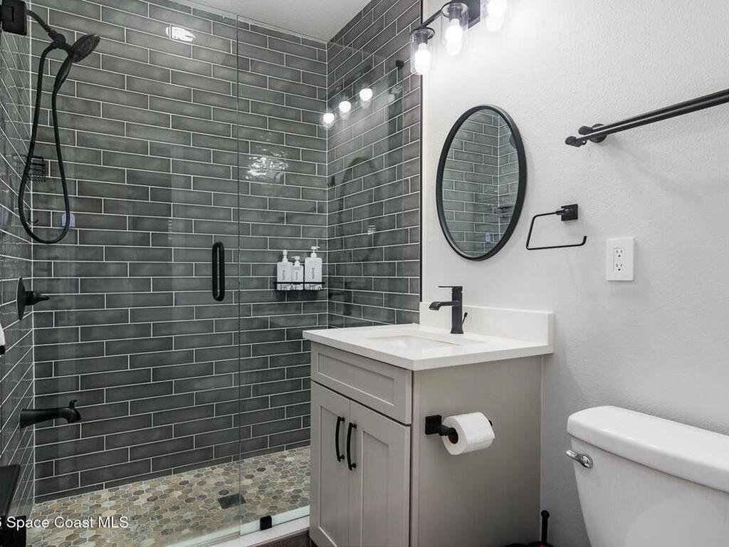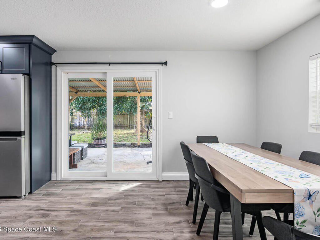 Just 5 min. walk to FIT - (Florida Tech) in Melbourne, this 4-bedroom home offers great value with $167K in thoughtful upgrades, all completed in 2023 for a clean, modern feel. The updated kitchen features a wall oven, gas cooktop, quartz counters, new cabinetry, and hardware flowing into a casual dining area. A small office provides work-from-home flexibility, while the indoor laundry room adds everyday convenience. The refreshed bathrooms include floor-to-ceiling tiled showers with glass enclosures, new vanities, and contemporary finishes. Wood-look tile flooring runs throughout for a cohesive, low-maintenance design--no carpet. Major updates include a 2017 metal roof, electrical panel, and impact windows throughout, offering durability and peace of mind. Outside, a large backyard with a spacious porch is ideal for relaxing or entertaining, plus a shed for storage. A solid, move-in-ready home in a central location near shopping, dining, major employers, and just 10 min. to the beach.