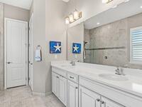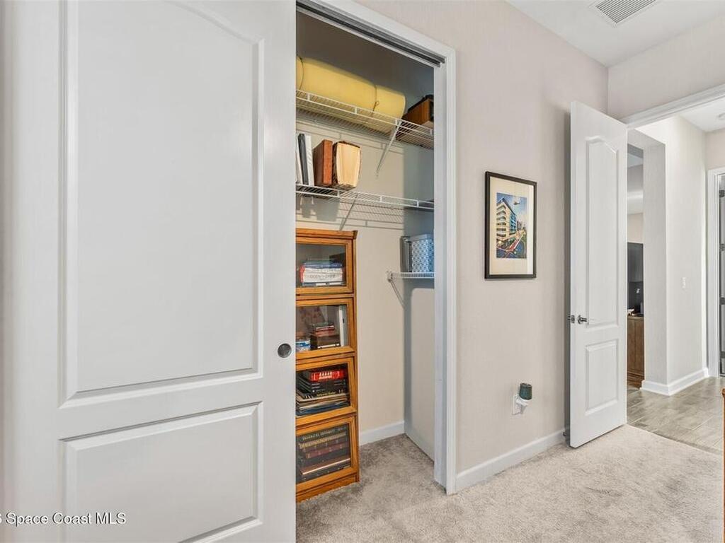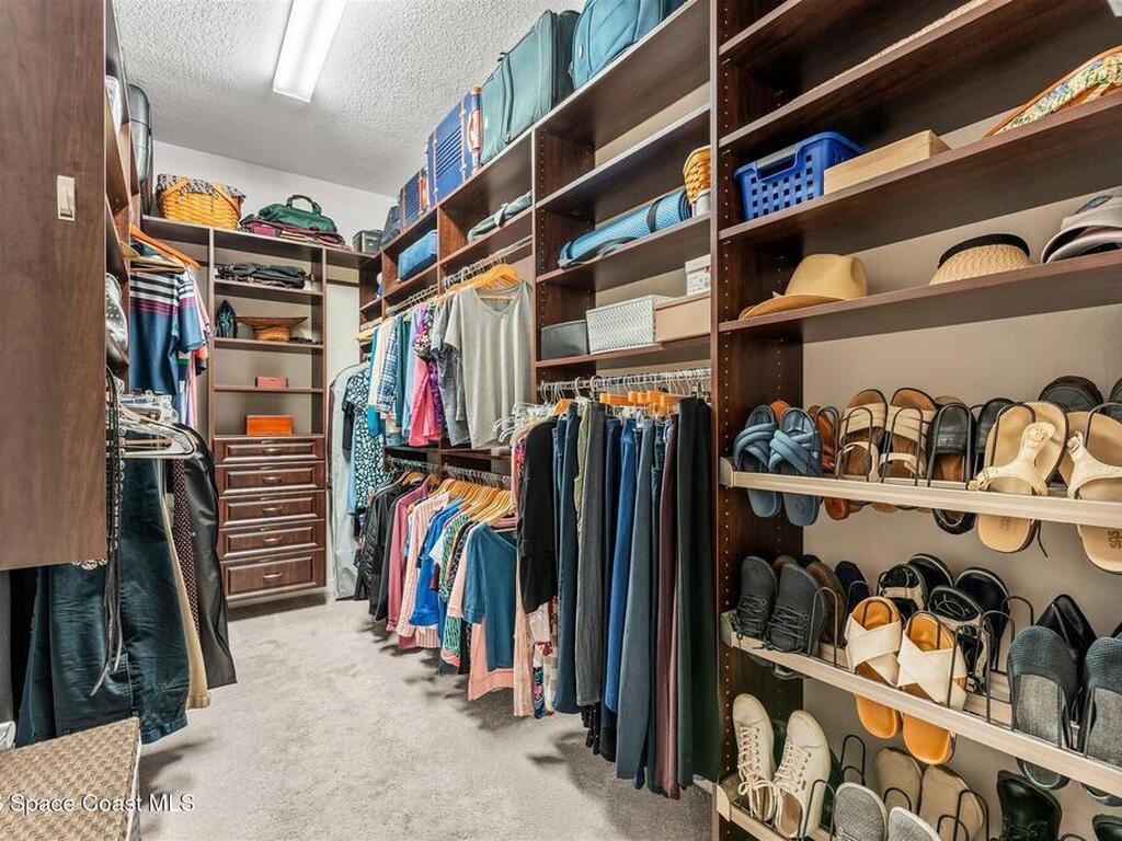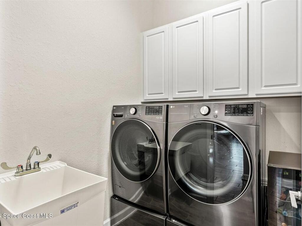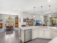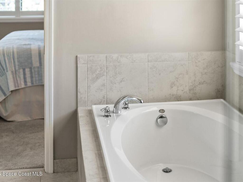 A tropical paradise awaits in this lovely 4 bed, 3 bath, 3 car garage POOL home in Bridgewater, Viera's resort style 55+ community! Located on a cul-de-sac, this meticulous home has additional lush landscaping for extra privacy! You will love the lanai with electric rolldown hurricane panels to keep your patio furniture protected during storms and the heated pool with a huge, screened enclosure! The ideal primary bedroom has a tray ceiling, a walk-in closet with custom built-ins and a bath with soaking tub and shower! Must have features include a guest bedroom w/ensuite bath, plantation shutters, wood look plank tile floors, tray ceiling & remote shades in great room, upgraded kitchen cabinets w/3 cm quartz counters, laundry room with sink, and even an EV plug and epoxy floors in garage! Energy efficient with attic radiant barrier & smart home features! Private clubhouse includes heated pool and spa, fitness center, lighted tennis & pickleball courts, billiards room and movie theater