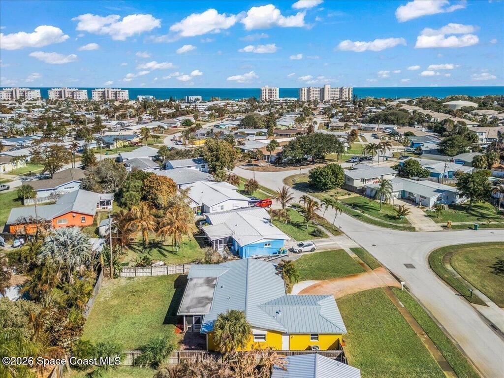Beachside cutie with timeless character and modern updates! This charming 3-bedroom, 2-bath split plan features classic terrazzo floors throughout and a newer metal roof (2020). The updated coastal kitchen offers a fresh, functional space with butcher block countertops and white shaker cabinets. Stainless steel appliances including a gas stove. Step outside a screened-in patio overlooking a large, fully fenced backyard -- ideal for relaxing after a beach day or letting pets roam freely. Located just a hop and skip to the beach. Soffits and gutters were done 4 years ago. Electric panel has also been updated.