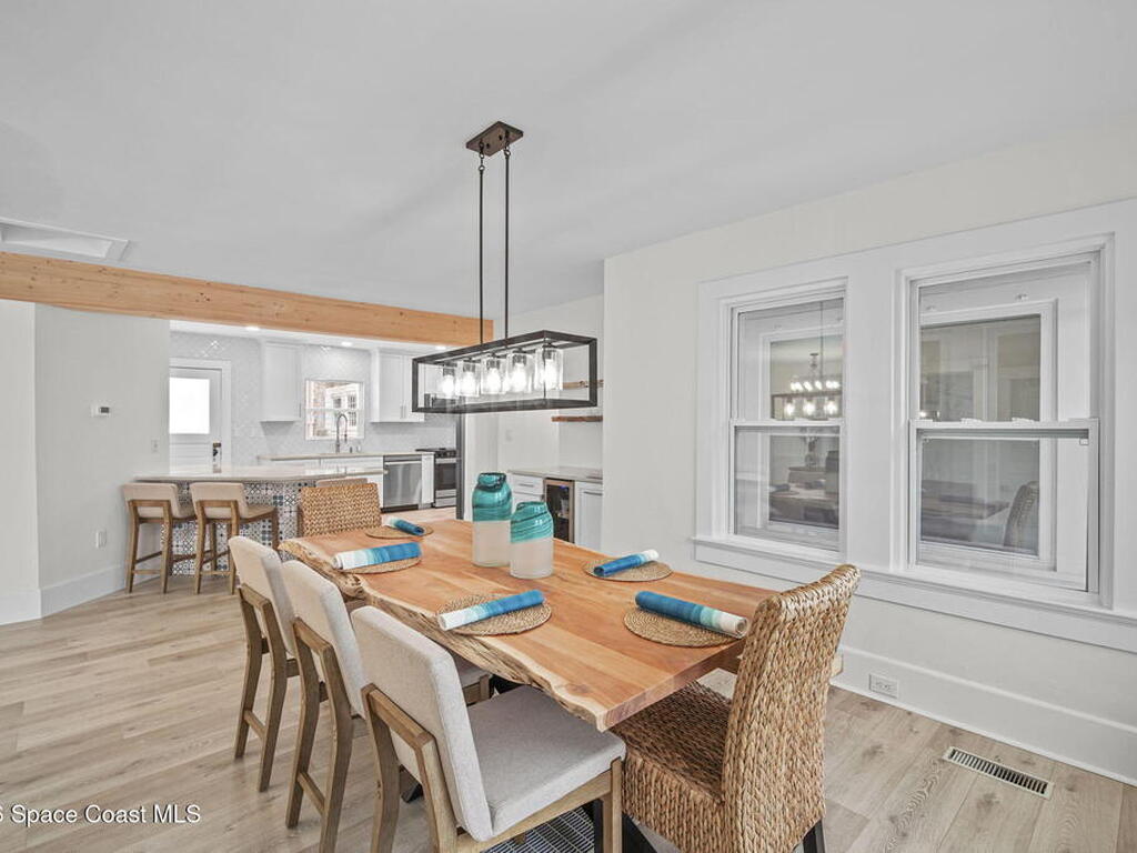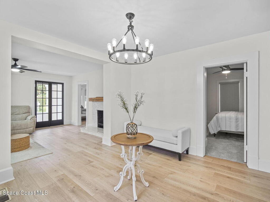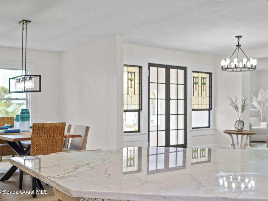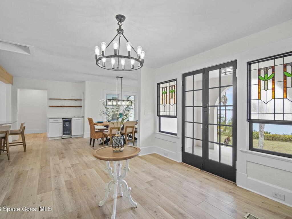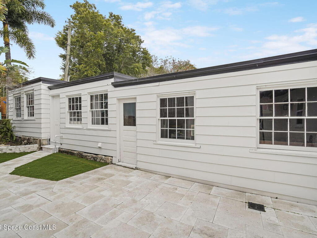 Set along the scenic Indian River, this exceptional riverfront residence blends timeless character with thoughtful modern updates, all within walking distance to Cocoa Village. Set high above the Indian River, the home offers peace of mind along with river views which can be enjoyed from your dock that is built out half way. The remodeled main residence features 3 bedrooms, 2 bathrooms, with a remodeled 520 square foot one-bedroom, one-bath apartment above the two-car garage--ideal for guests or extended living. Extensive upgrades include: New roof (2023), 47 hurricane impact windows, modern garage door, new floording throughout, and new lighting fixtures. Remodeled kitchen features new cabinetry, quartzite countertops, new appliances, an island with seating, and a hidden butler's pantry with laundry. Home has a split bedroom floor plan. Master suite has a walk-in closet, separate sitting area, dual head shower, and automatic roller shades. Comes fully furnished. Truly a must see!