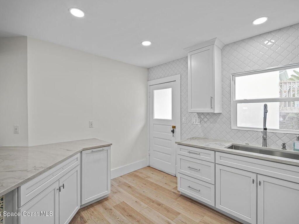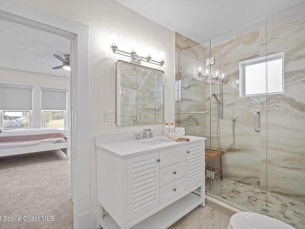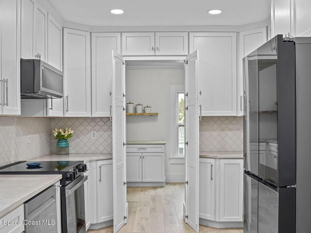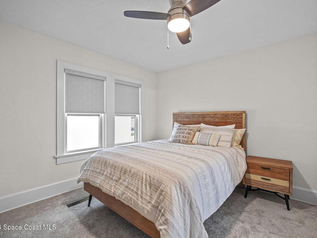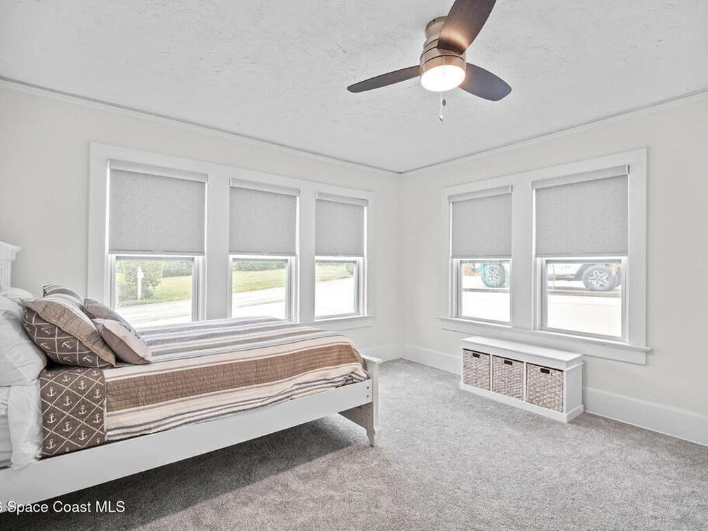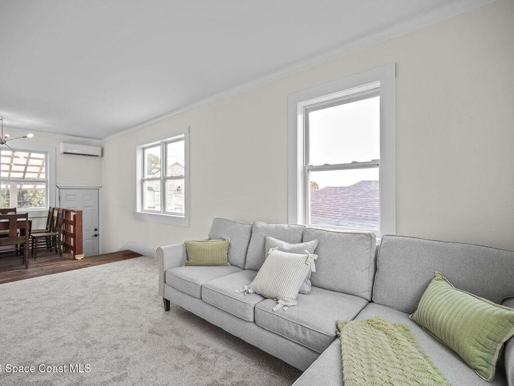 Set along the scenic Indian River, this exceptional riverfront residence blends timeless character with thoughtful modern updates, all within walking distance to Cocoa Village. Set high above the Indian River, the home offers peace of mind along with river views which can be enjoyed from your dock that is built out half way. The remodeled main residence features 3 bedrooms, 2 bathrooms, with a remodeled 520 square foot one-bedroom, one-bath apartment above the two-car garage--ideal for guests or extended living. Extensive upgrades include: New roof (2023), 47 hurricane impact windows, modern garage door, new floording throughout, and new lighting fixtures. Remodeled kitchen features new cabinetry, quartzite countertops, new appliances, an island with seating, and a hidden butler's pantry with laundry. Home has a split bedroom floor plan. Master suite has a walk-in closet, separate sitting area, dual head shower, and automatic roller shades. Comes fully furnished. Truly a must see!