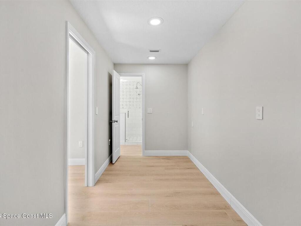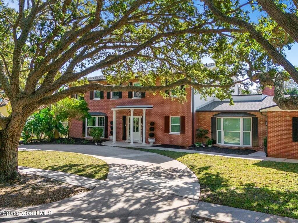 Remodeled in 2025 with impact windows, new 1st floor owner's suite, roof new in 2020, acs 2021 and 2025! Enjoy crisp river breezes in Indialantic in this gorgeous traditional concrete block house featuring 4 beds and 4 baths (2 owner suites) on a large corner lot. Stately oaks grace the grounds and a circular drive allows for guest parking. Neutral plank tile throughout the first floor reflects the feeling of sand beneath your feet. The charming contemporary kitchen includes a breakfast bar, ample cabinetry, a stylish tile backsplash, and stainless steel appliances. Nearby, a spacious living and dining room offer the perfect space for entertaining, and the huge family room features a cozy fireplace. A dedicated office makes the perfect area for a WFH setup, home gym, or studio. The stunning new owners' suite on the first floor offers a spa-like bathroom with a soaking tub, frameless shower, and large walk-in closet. Step outside to find a huge, fenced backyard where you can ''SEE MORE